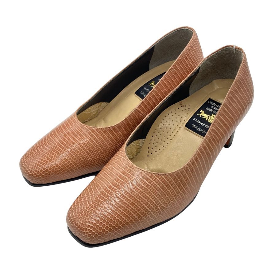 新宿屋 レザーパンプス リザード 5410-550 ブラウン 22.0cm レディース shinjukuya 約22.0cm【7-6】