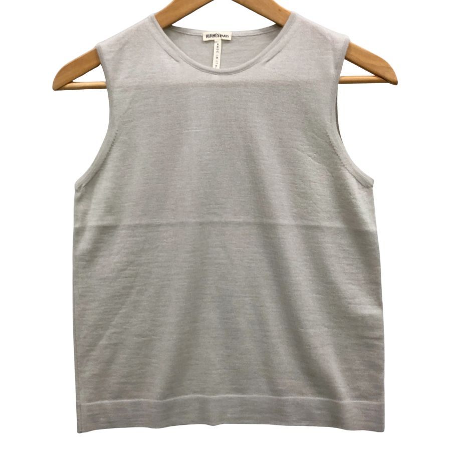 中古◆エルメス マルジェラ期 ノースリーブ トップス カシミヤ シルク レディース サイズSM グレー HERMES 【AFB15】