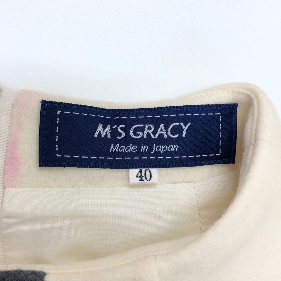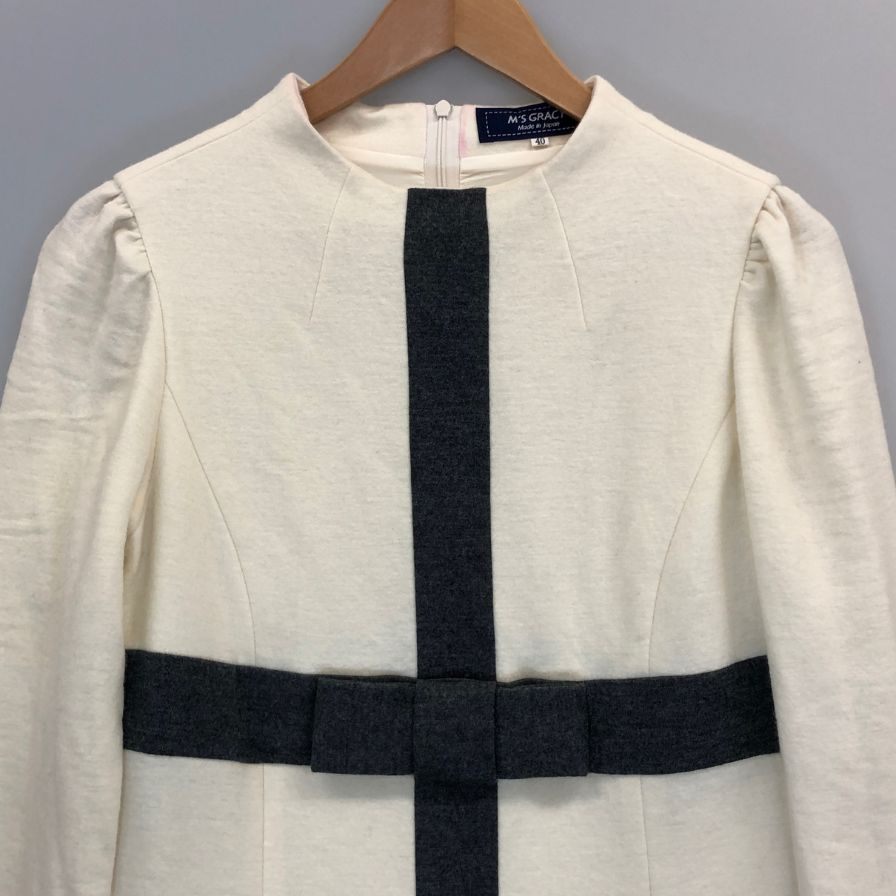 美品◆エムズグレイシー ニットワンピース 長袖 ウール ハイゲージ デザイン ホワイト レディース サイズ40 M'S GRACY 【AFB11】
