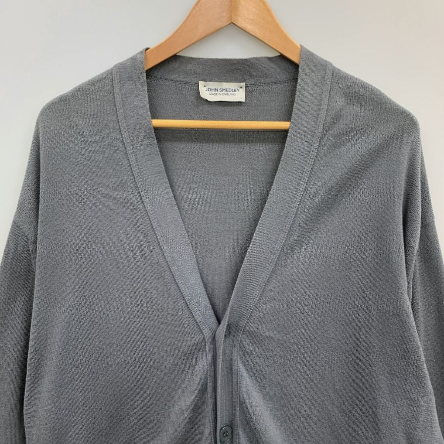 中古◆ジョンスメドレー ニットカーディガン グレー メンズ サイズL JOHN SMEDLEY 【AFB26】