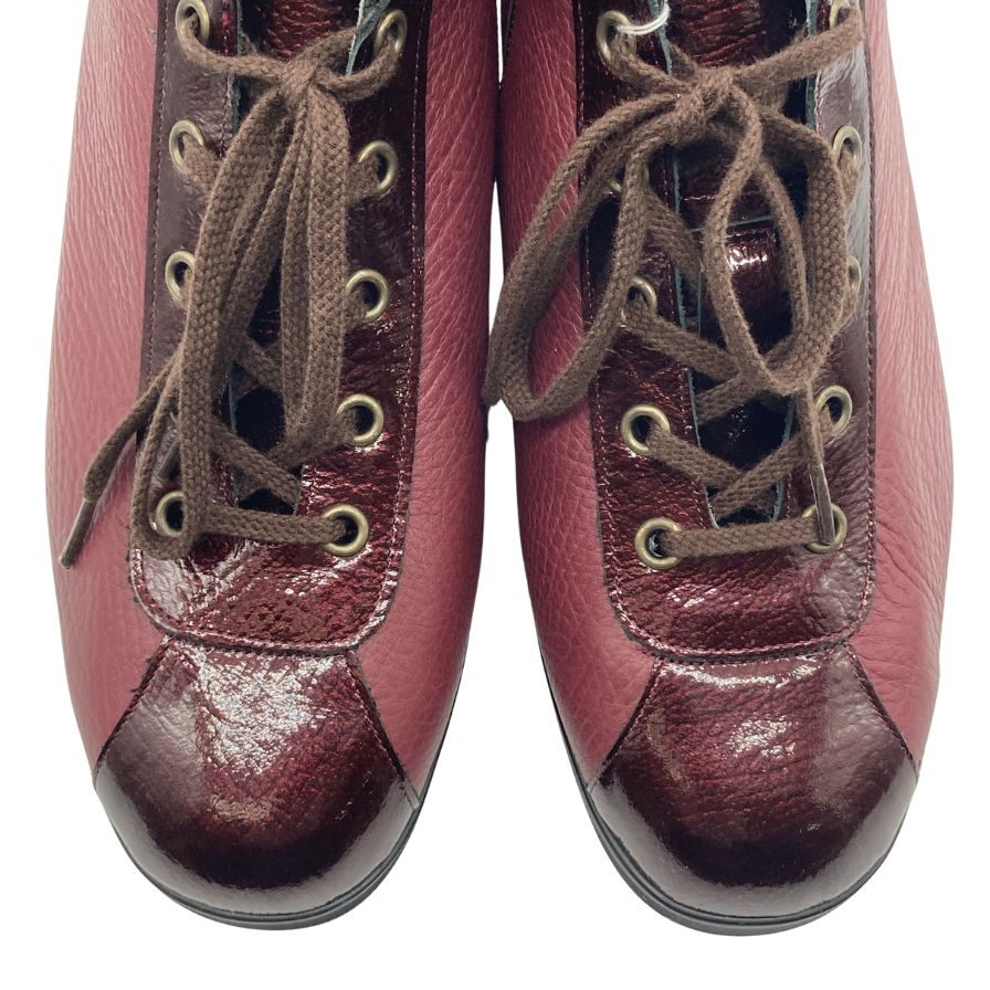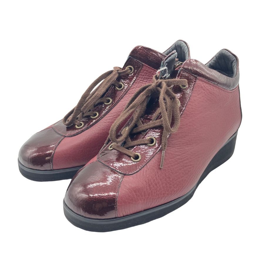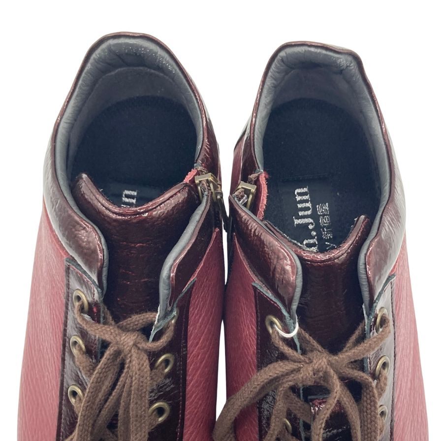 ジュンジュンバイ新宿屋 スニーカー ヒール レザー 3411 ワイン エナメルレザー 切替 レディース サイズ22.5 Jun.Jun by shinjukuya 約22.5cm【7-8】