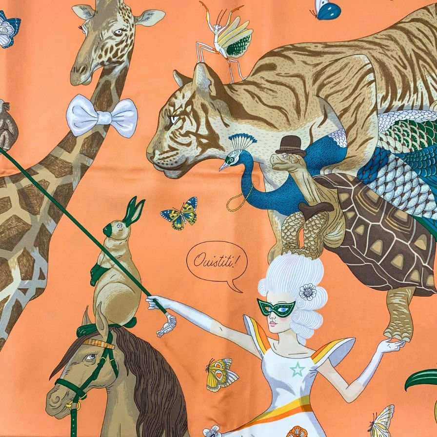 エルメス カレ90 HERMES STORY エルメス ストーリー シルク オレンジ系 レディース HERMES【AFI20】