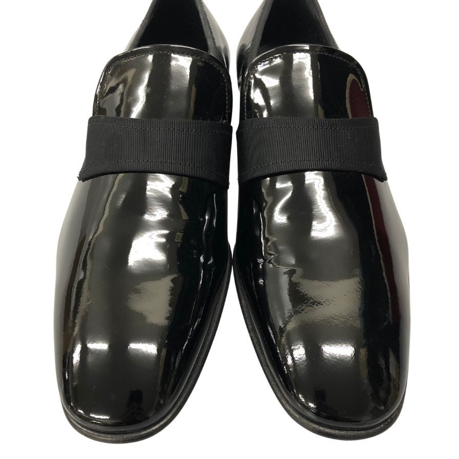 サルヴァトーレフェラガモ レザースリッポン パテントレザー メンズ サイズ 8 1/2 ブラック Salvatore Ferragamo 約26.5cm【AFD9-2】