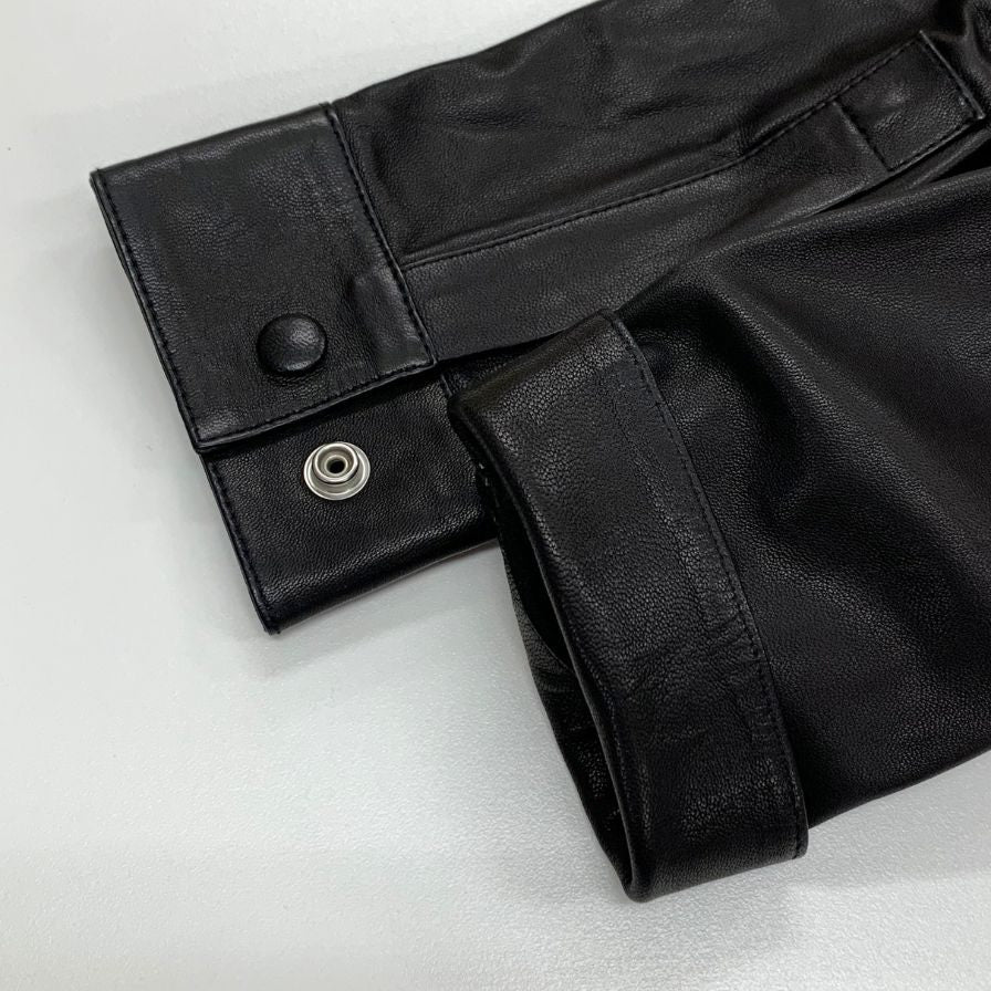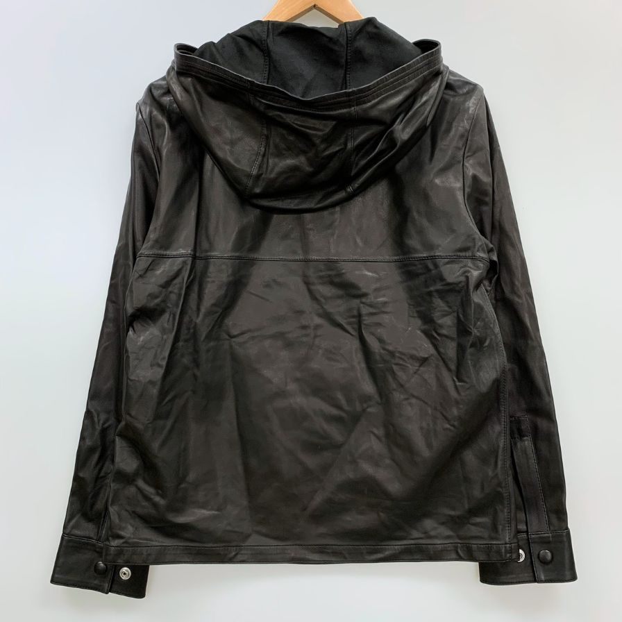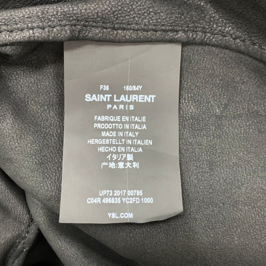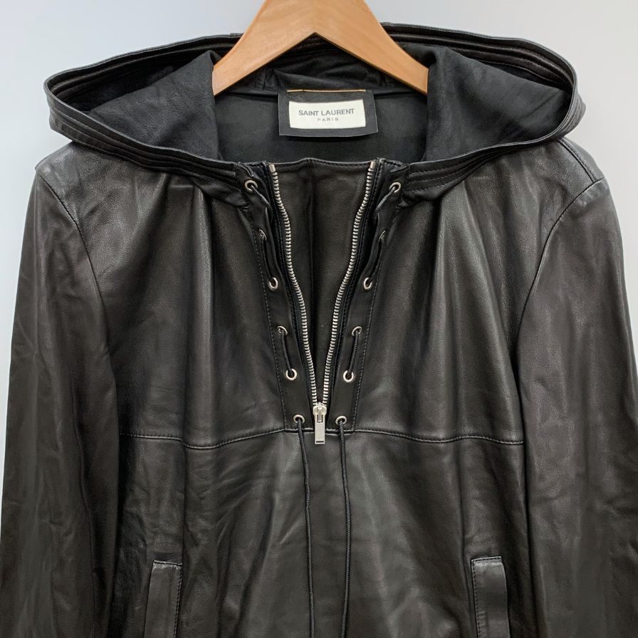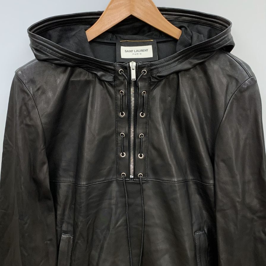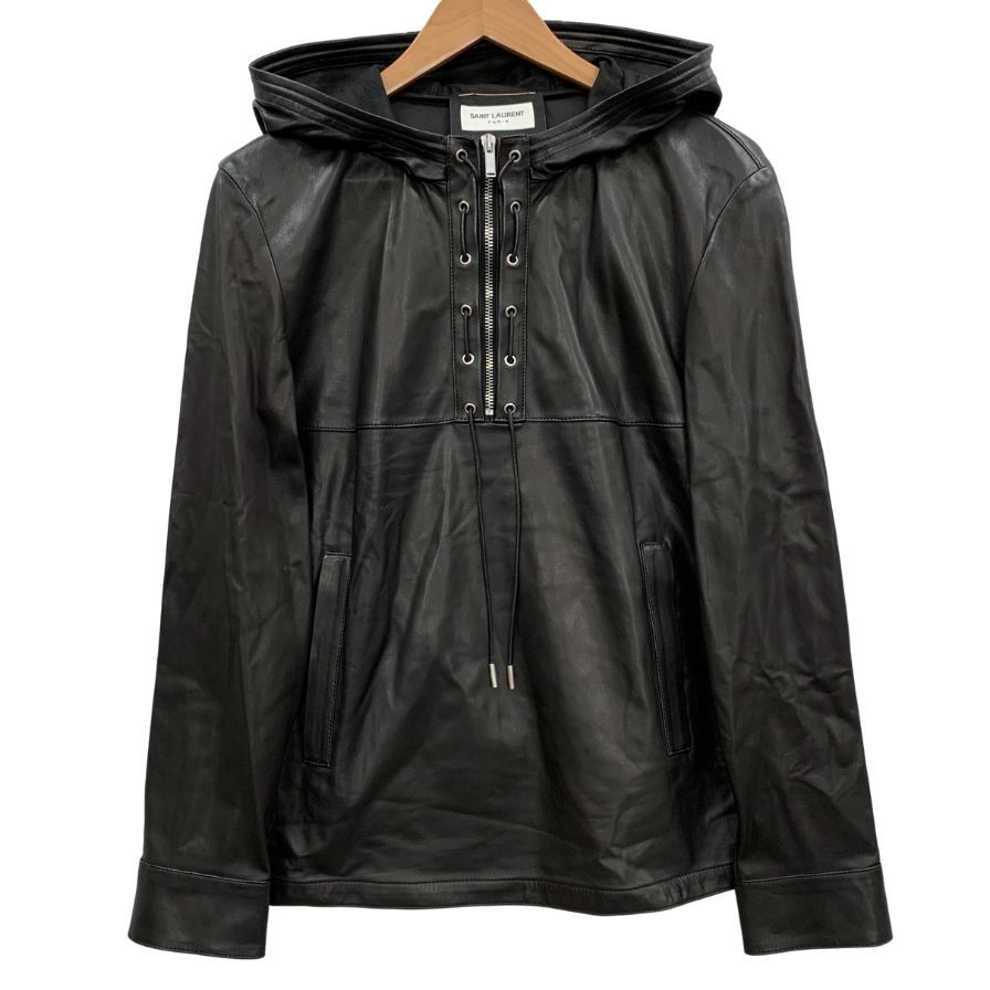 極美品◆サンローラン パリ フーディー レザー トップス プルオーバー 2017 ラム革 レディース サイズ36 ブラック SAINT LAURENT PARIS 【AFB26】