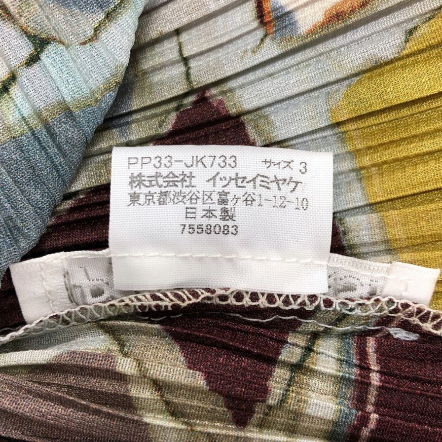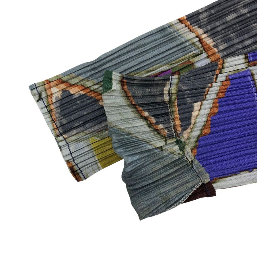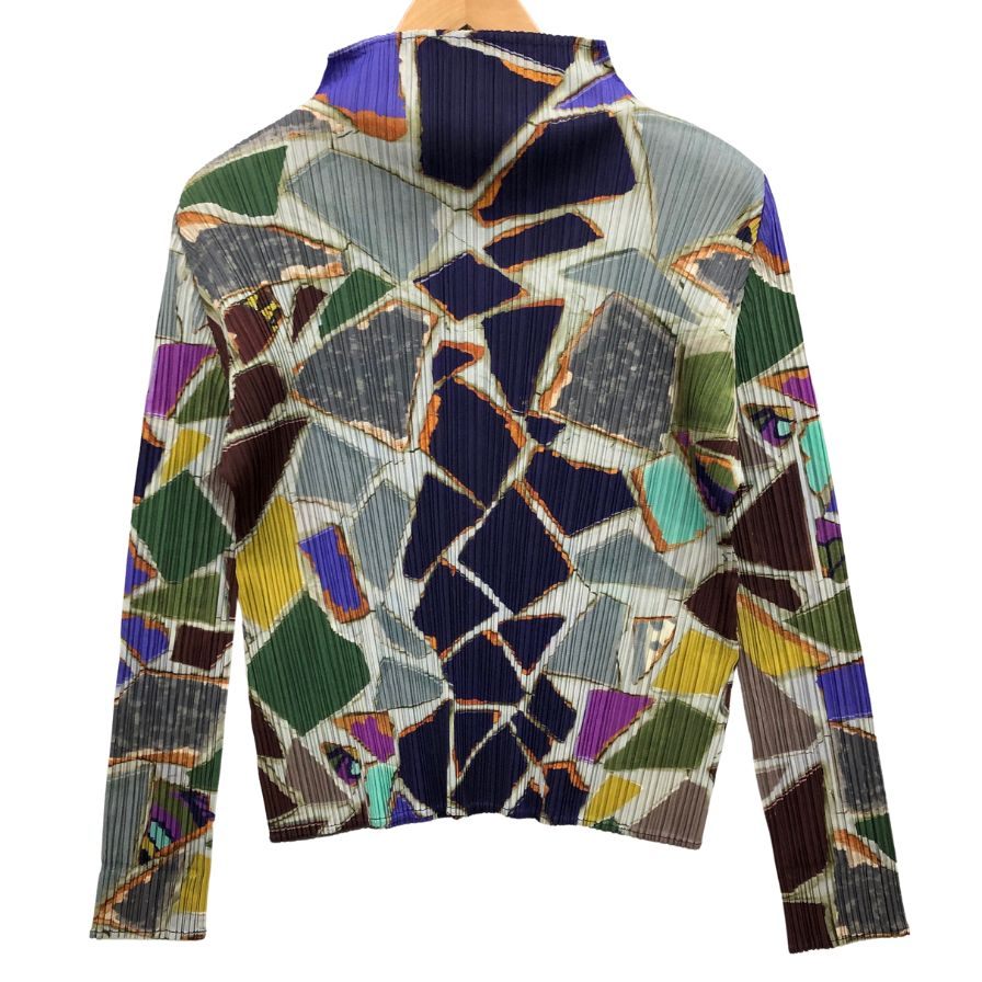 美品◆プリーツプリーズ イッセイミヤケ 長袖シャツ 総柄 ボトルネック レディース サイズ3 マルチカラー PP33-JK733 PLEATS PLEASE ISSEY MIYAKE 【AFB21】