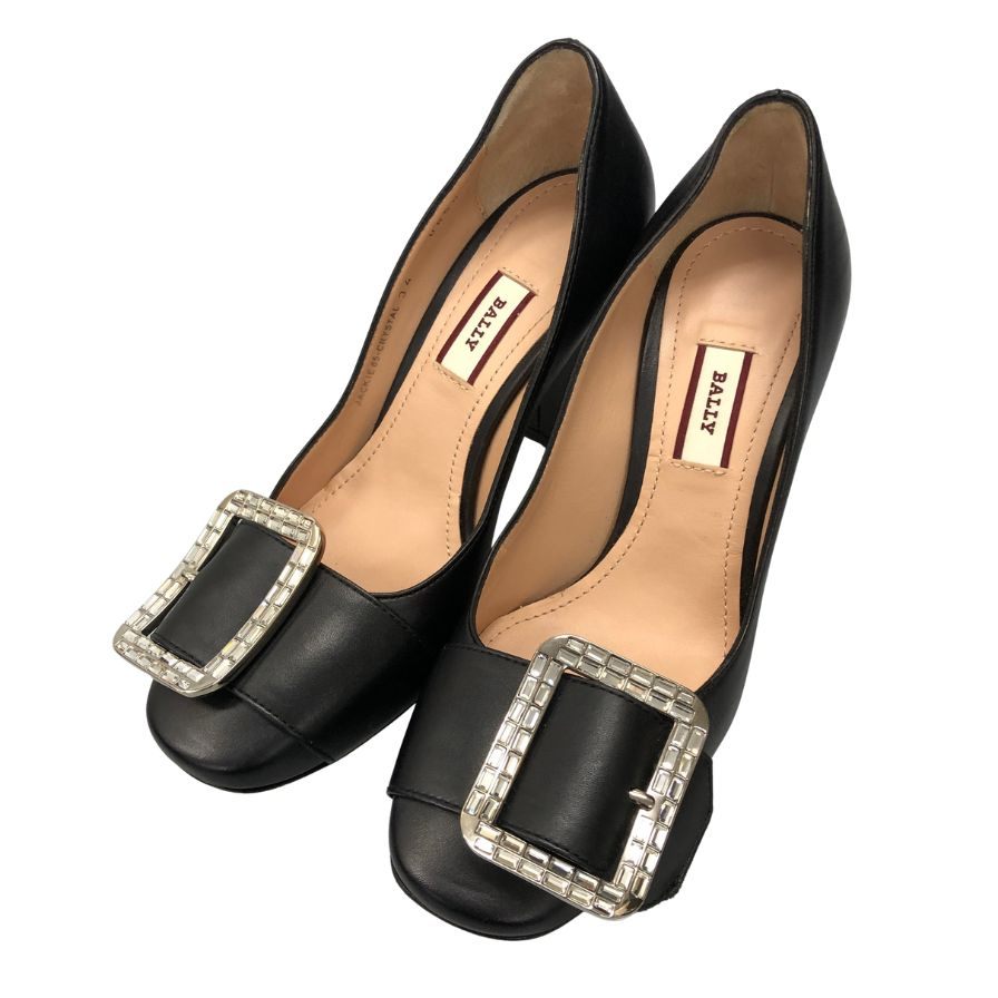 バリー ヒールパンプス ビジューバックル レザー ブラック サイズ34 メンズ BALLY 約20.5cm【AFD15-2】