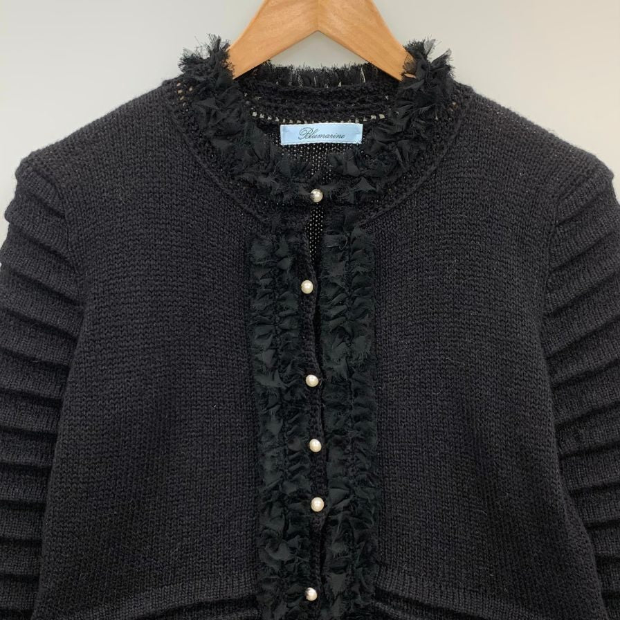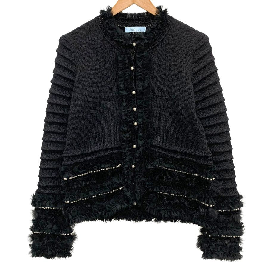 極美品◆ブルーマリン ジャケット ビジューあしらい レディース サイズ42 ブラック Bluemarine 【AFB26】