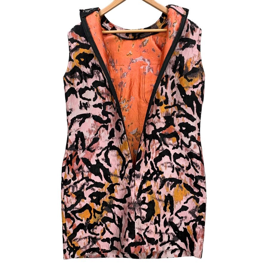 美品◆トムフォード ノースリーブ ワンピース フロントポケット ショルダーボタン レディース サイズ42 総柄 TOM FORD 【AFB25】