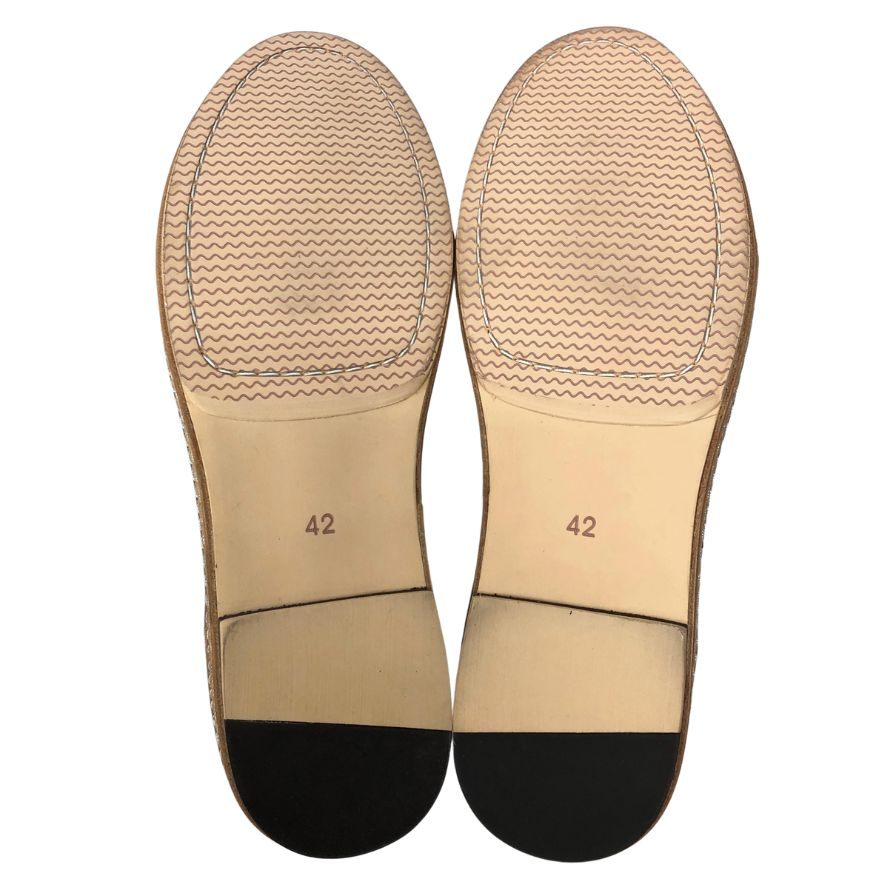 商品詳細 | 表記サイズ【42】(約26.0cm) アウトソール縦:30cm アウトソールウィズ:10cm 全高:11cm ヒール:1cm ※採寸に関しまして1~2cm程誤差が出てしまう場合もございます。予めご了承くださいませ。 |