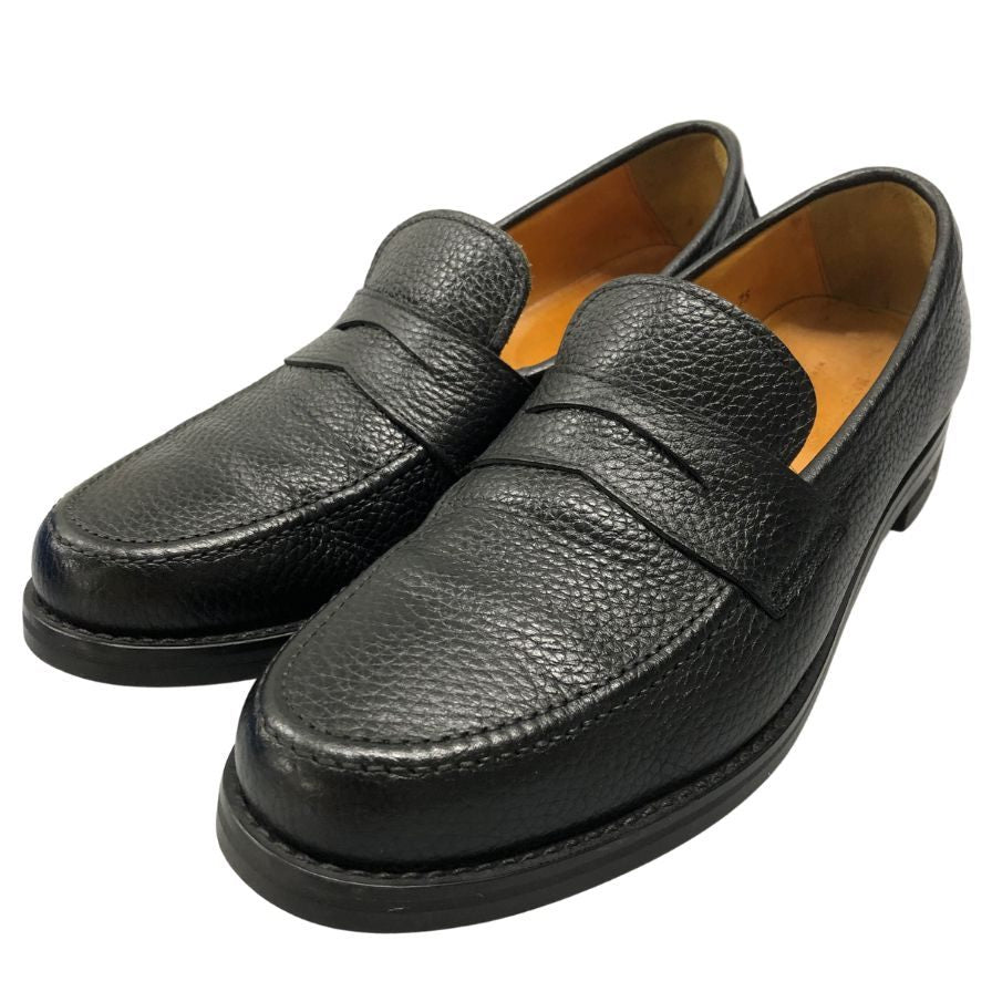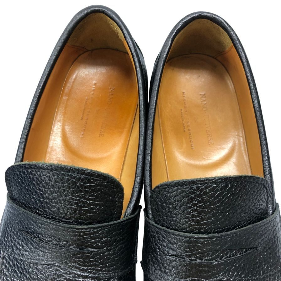 ナノユニバース ヒロシ ツボウチ ローファー シボレザー 型押し コイン 0500 ブラック メンズ サイズ7.5 NANO UNIVERSE HIROSHI TSUBOUCHI 約26.5cm【AFD8】