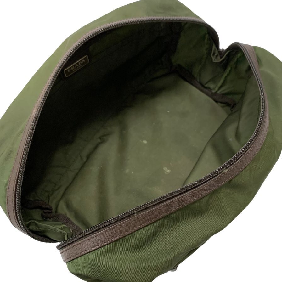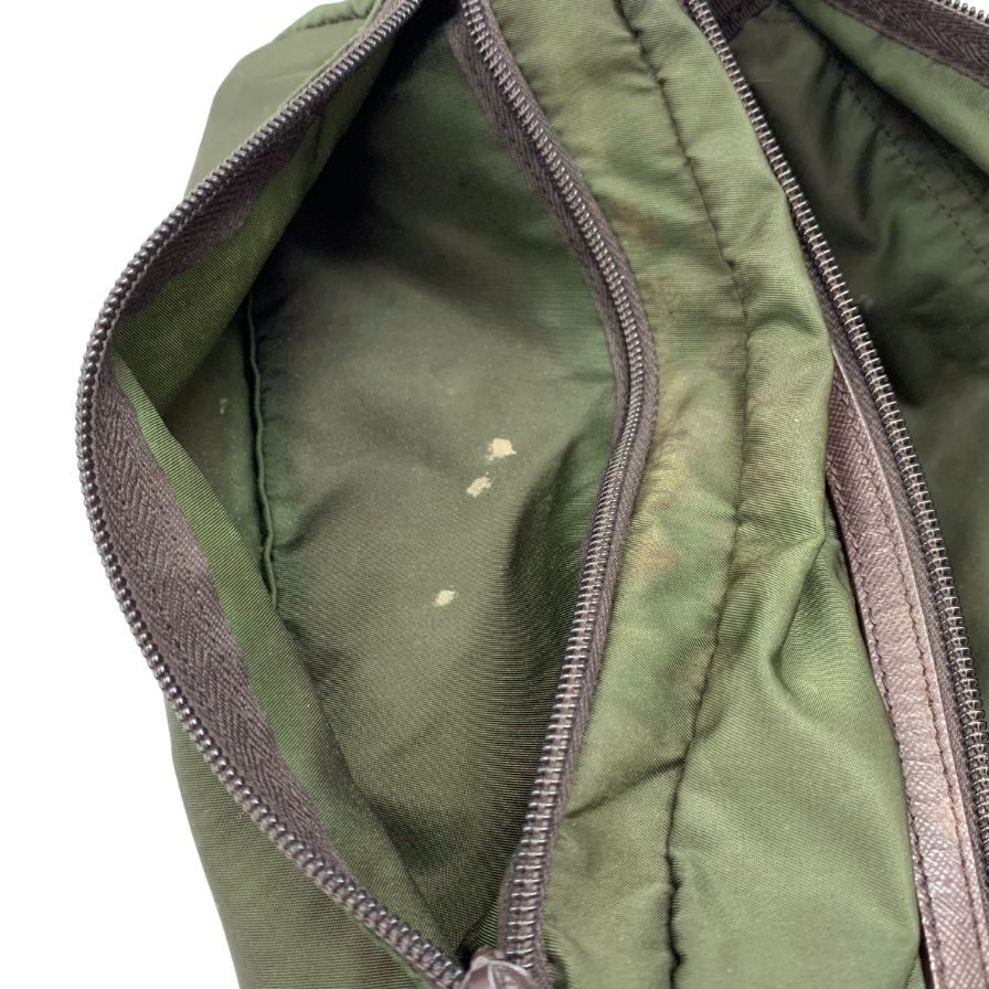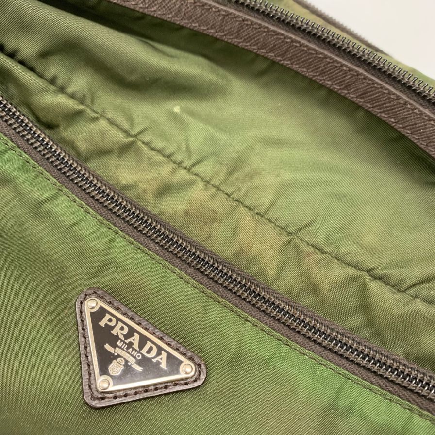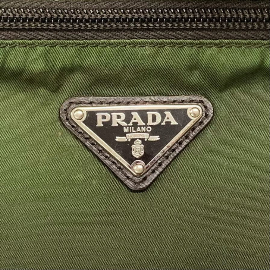 プラダ セカンドバッグ 三角ロゴ ナイロン×レザー カーキ PRADA【AFE5】