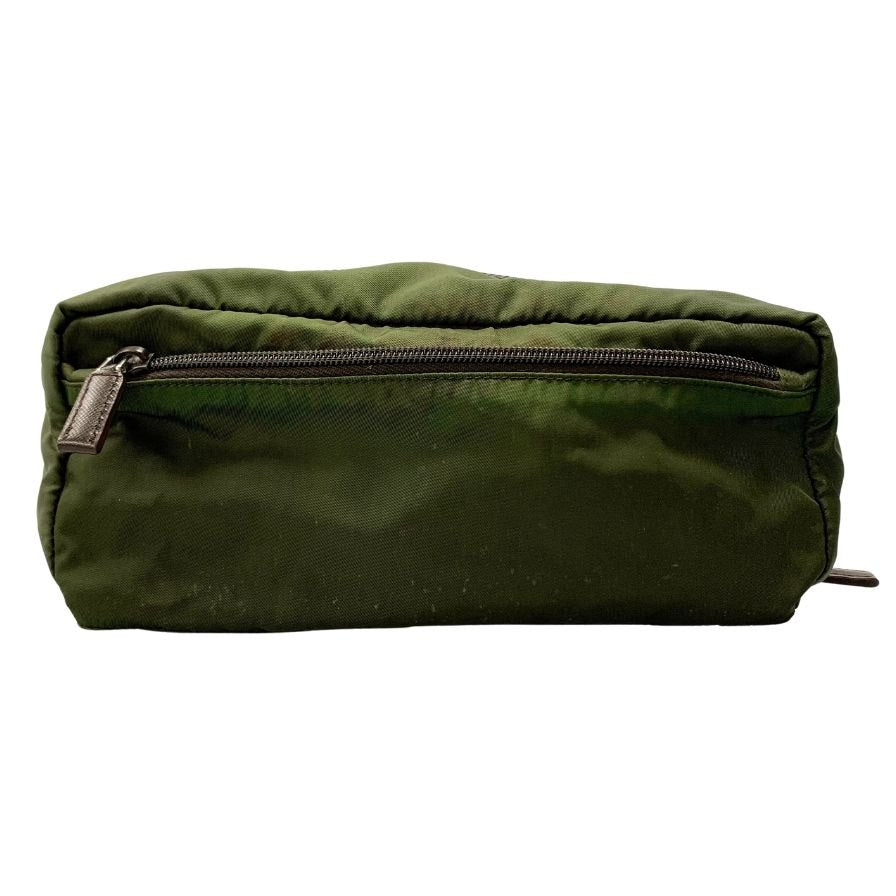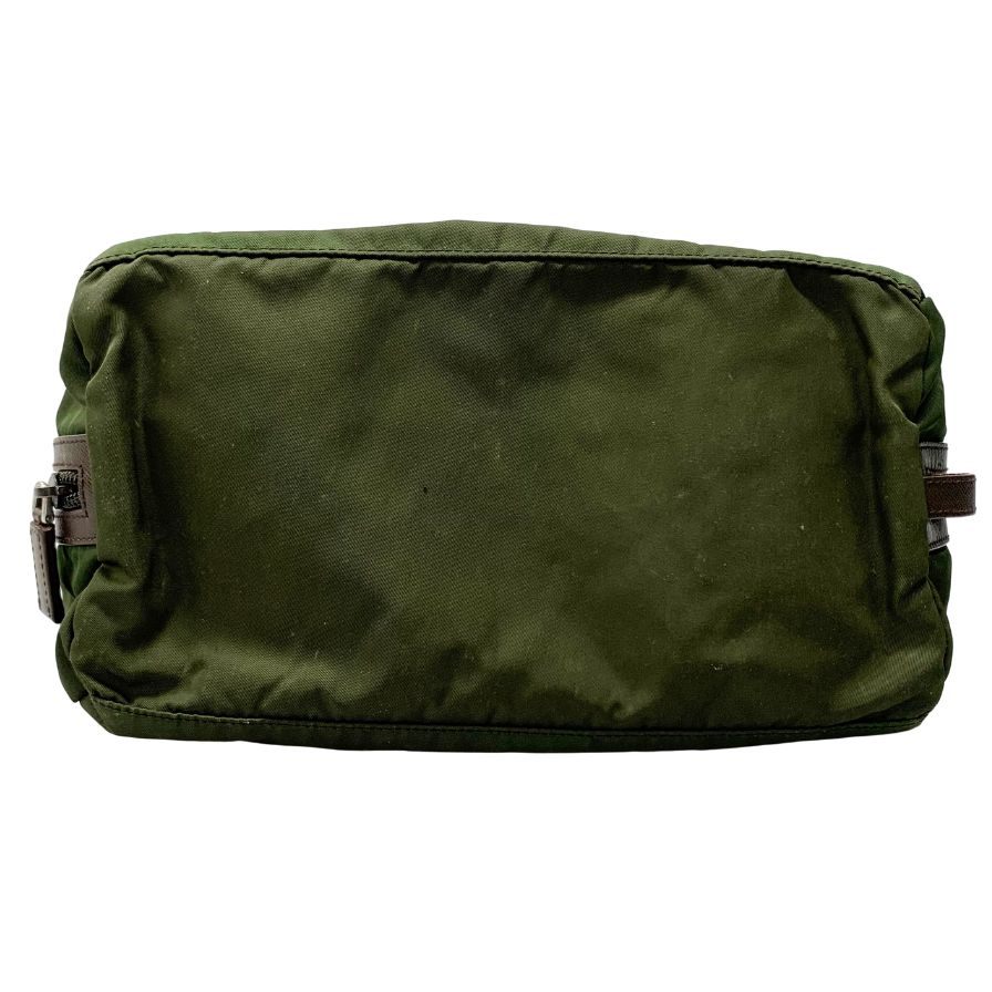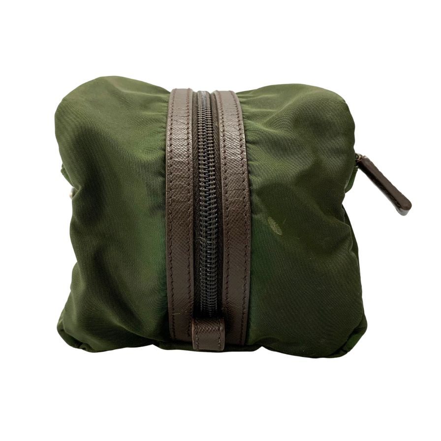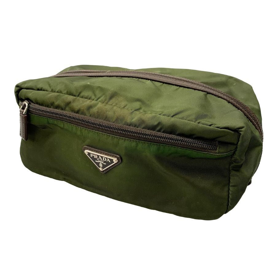 プラダ セカンドバッグ 三角ロゴ ナイロン×レザー カーキ PRADA【AFE5】
