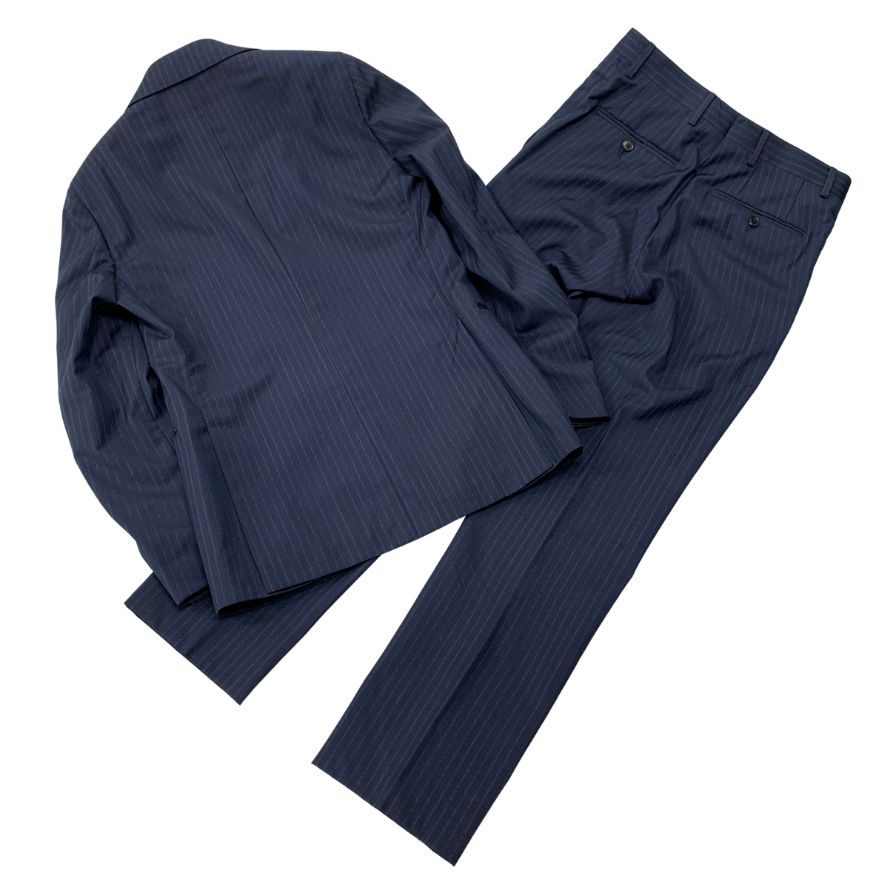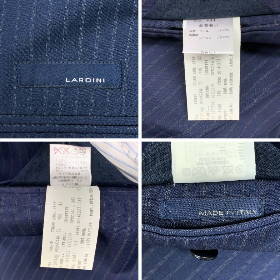 ラルディーニ スーツ ストライプ柄 ウール グレー系 メンズ ネイビー系 サイズ42REG LARDINI【AFB18】