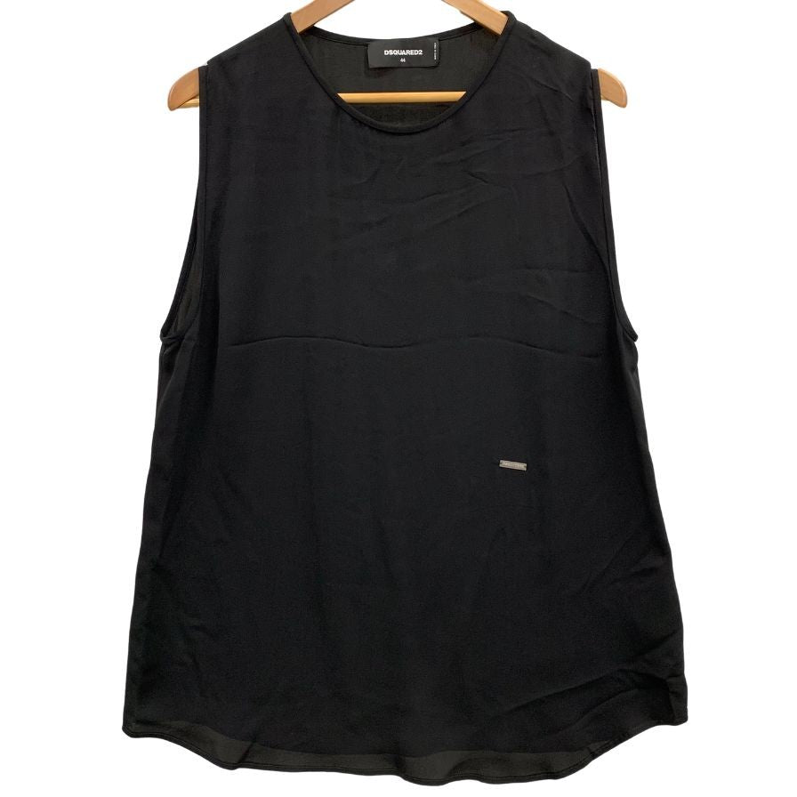 中古◆ディースクエアード ノースリーブ トップス ロゴプレート シルク100% レディース サイズ44 ブラック DSQUARED2 【AFB6】