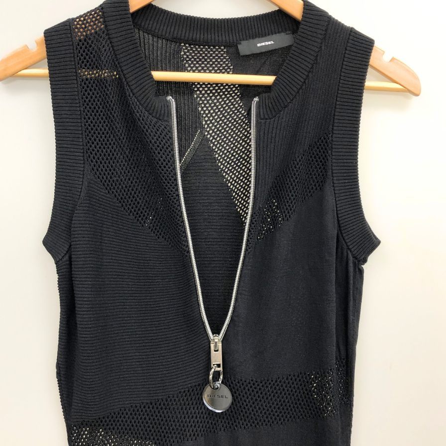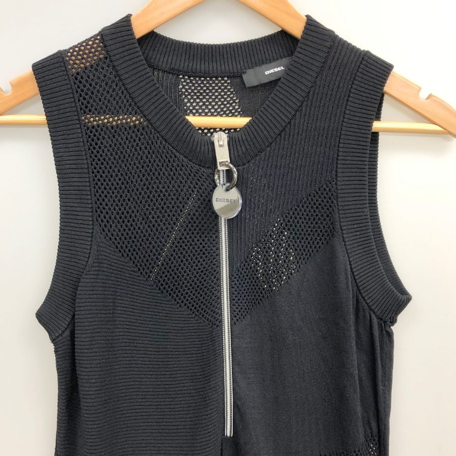 極美品◆ディーゼル ノースリーブワンピース メッシュ ニット ブラック レディース サイズS DIESEL 【AFB4】