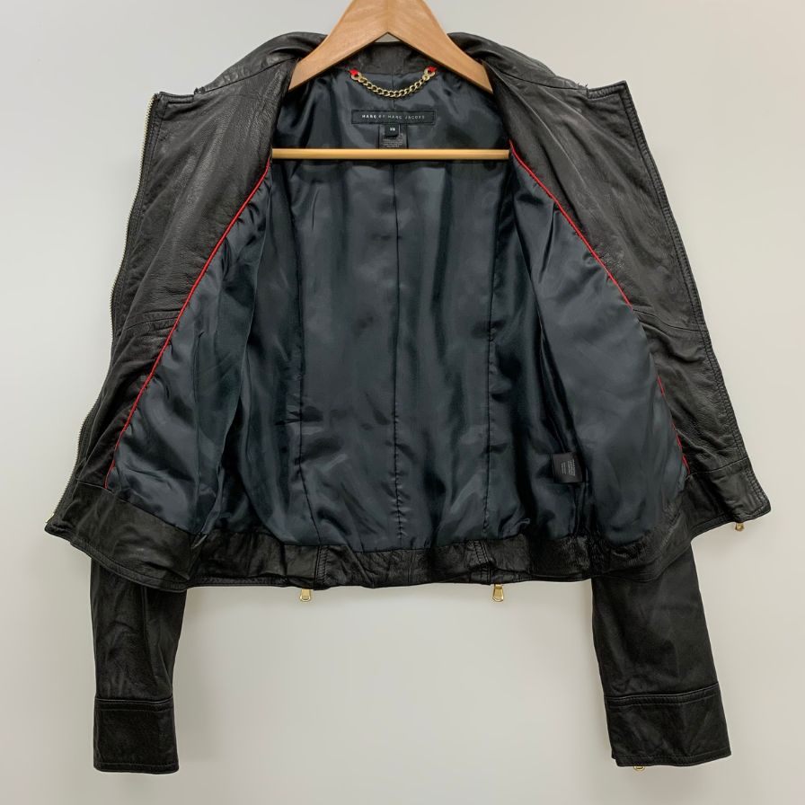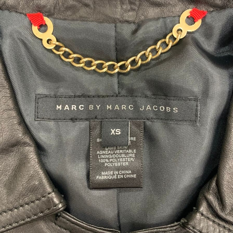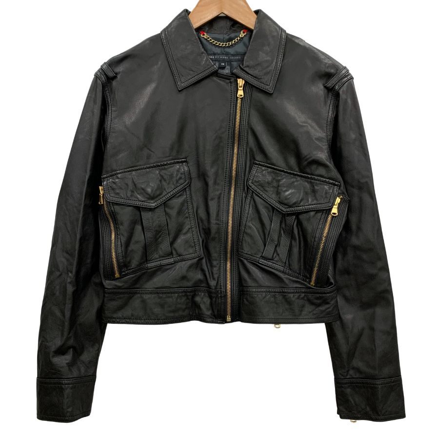 美品◆マークバイマークジェイコブス レザー ジャケット ゴールド金具 ショート丈 ラム革 レディース サイズXS ブラック MARC by MARC JACOBS 【AFB26】