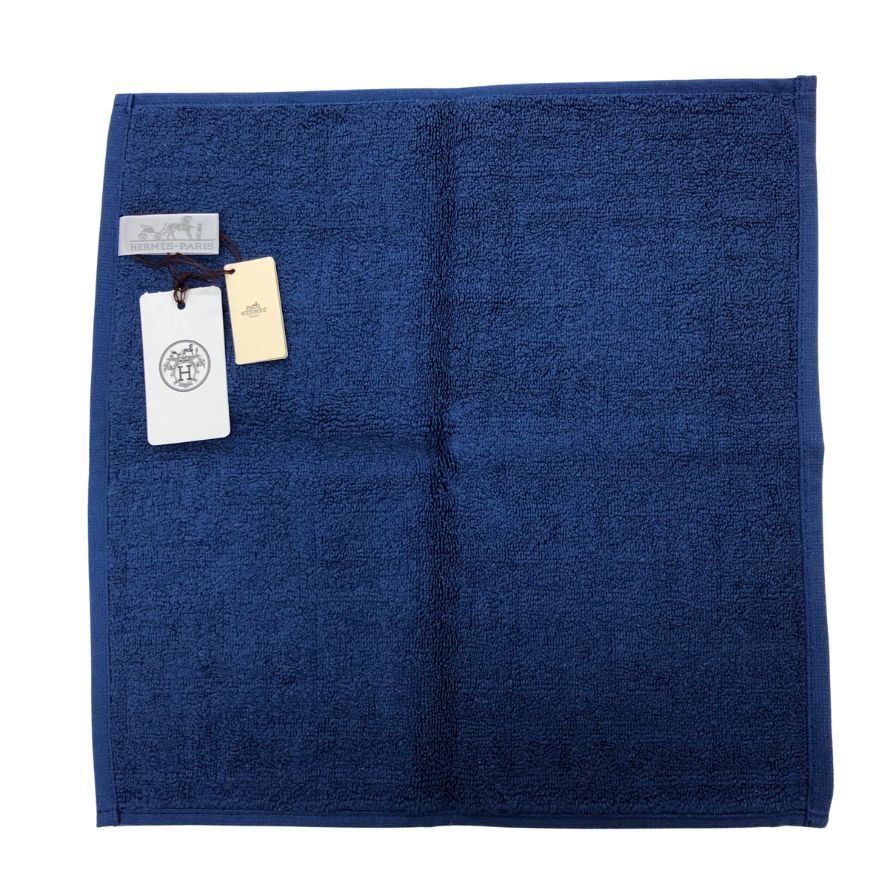 エルメス ミニタオル ハンカチ カレ Hロゴエンボス コットン ブルー系 ユニセックス HERMES