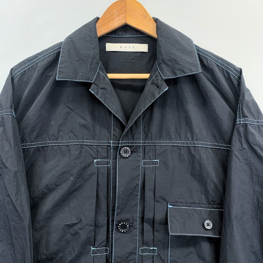 美品◆ミューズ ナイロンジャケット Gジャンモチーフ メンズ サイズ1 ブラック MUZE 【AFA21】