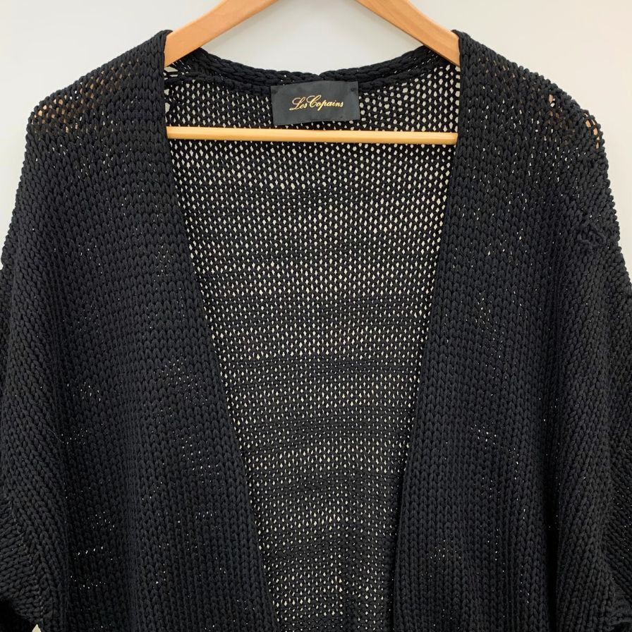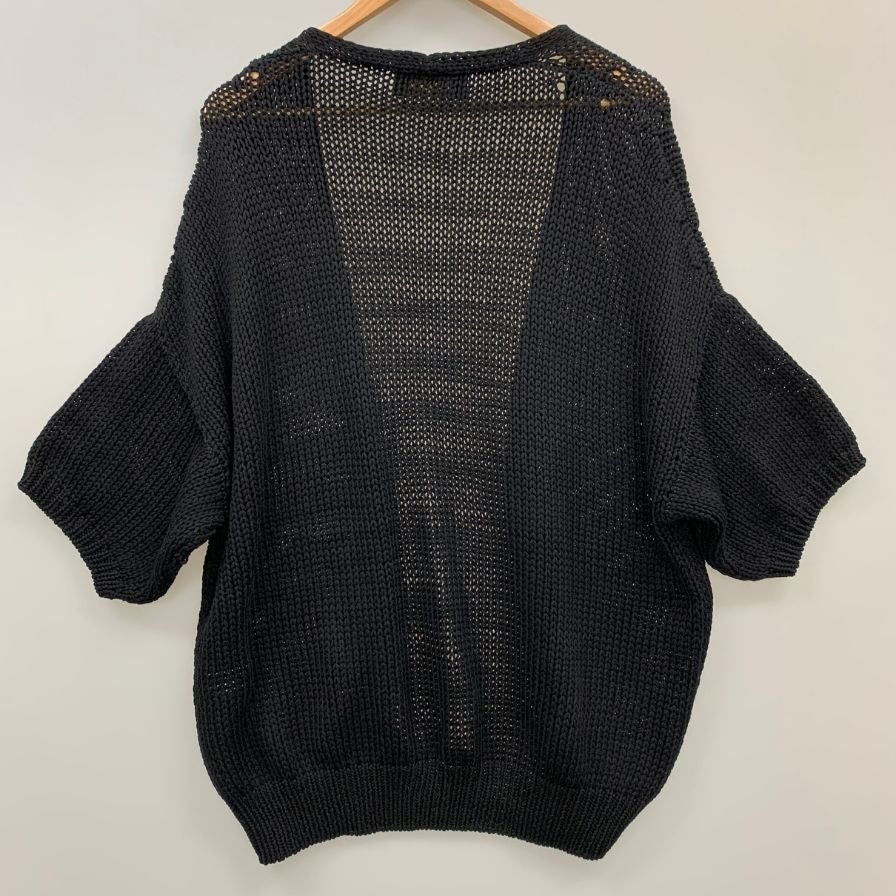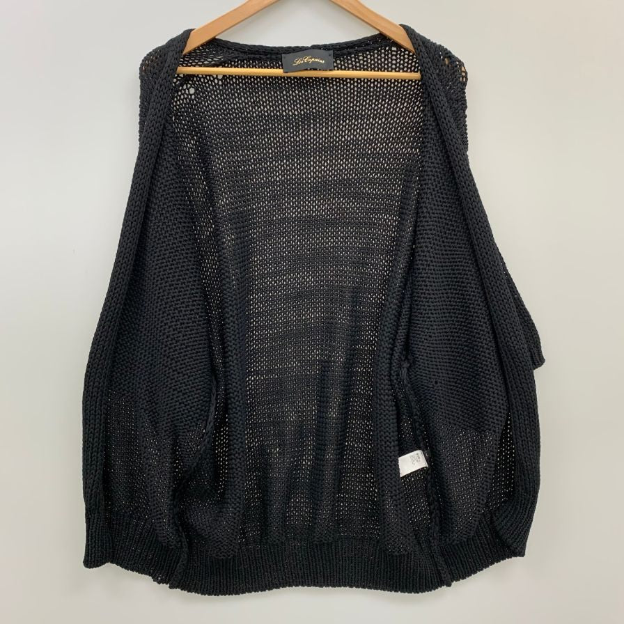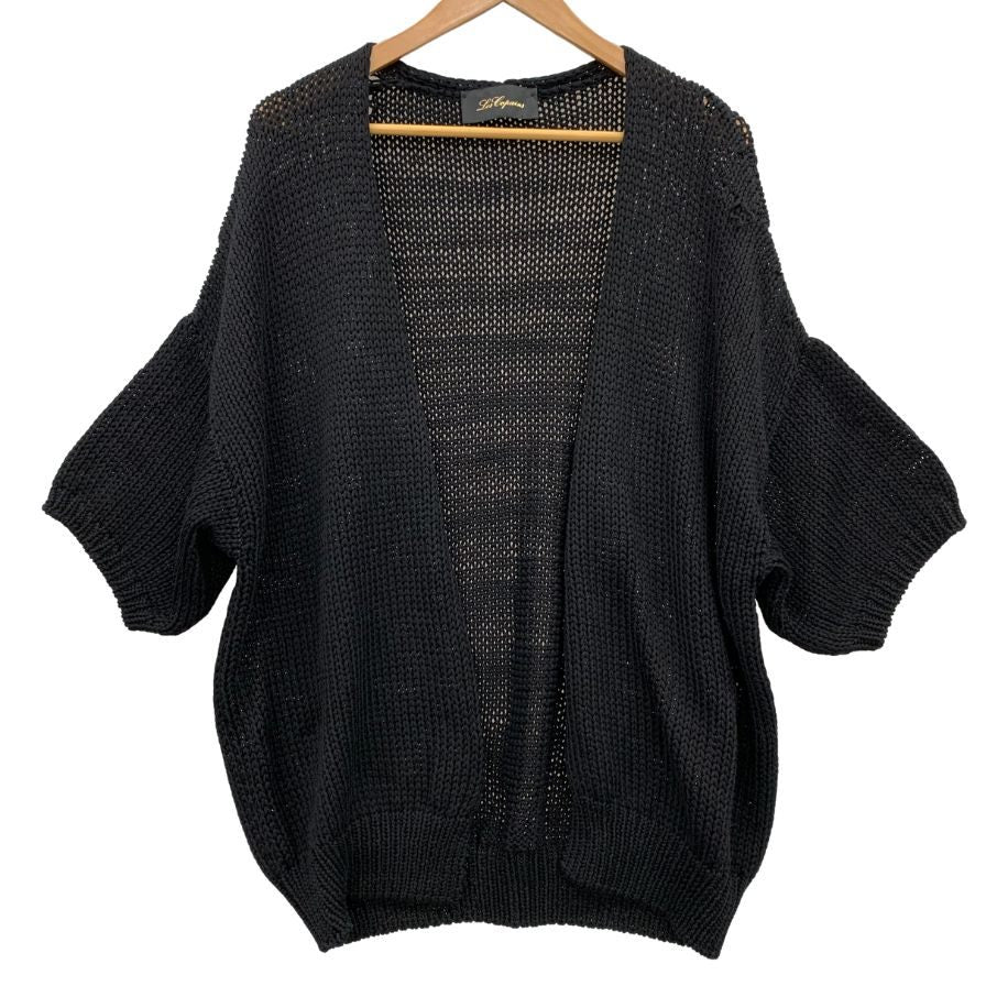 中古◆レ コパン ハイゲージニット ボタンレス 半袖カーディガン ブラック サイズL レディース LES COPAINS made in italy 【AFB41】