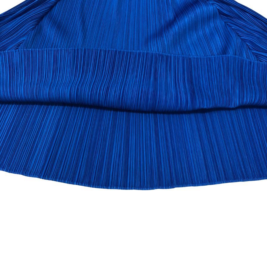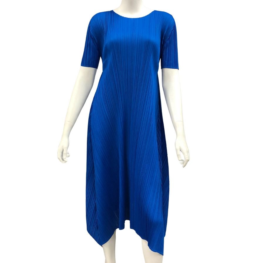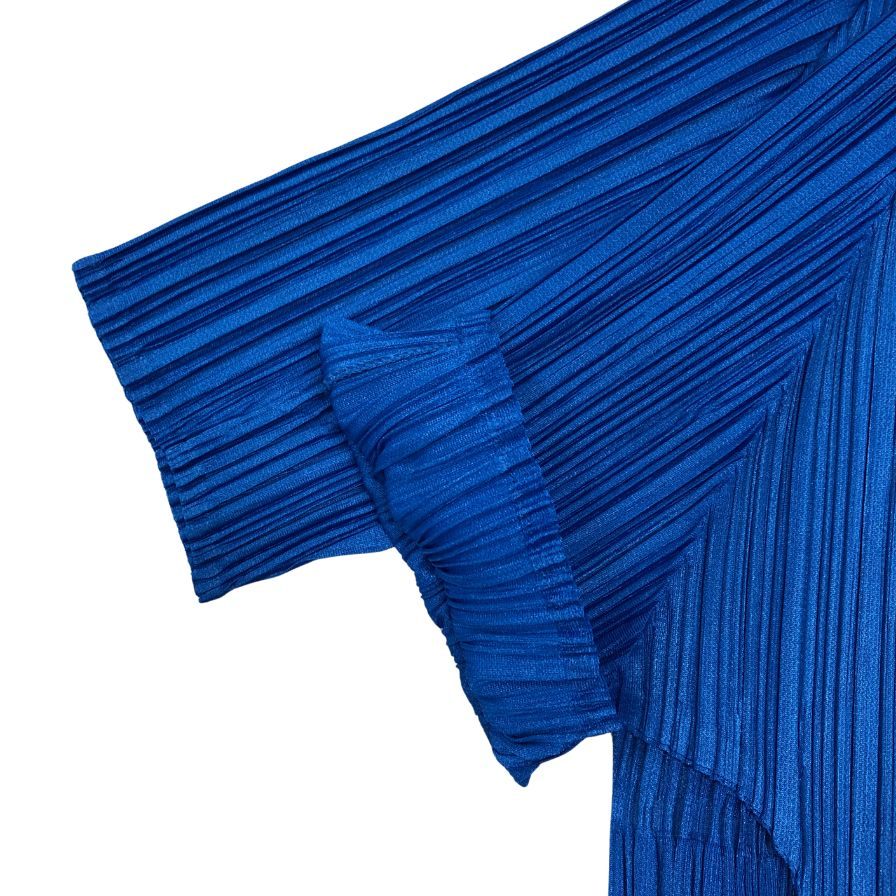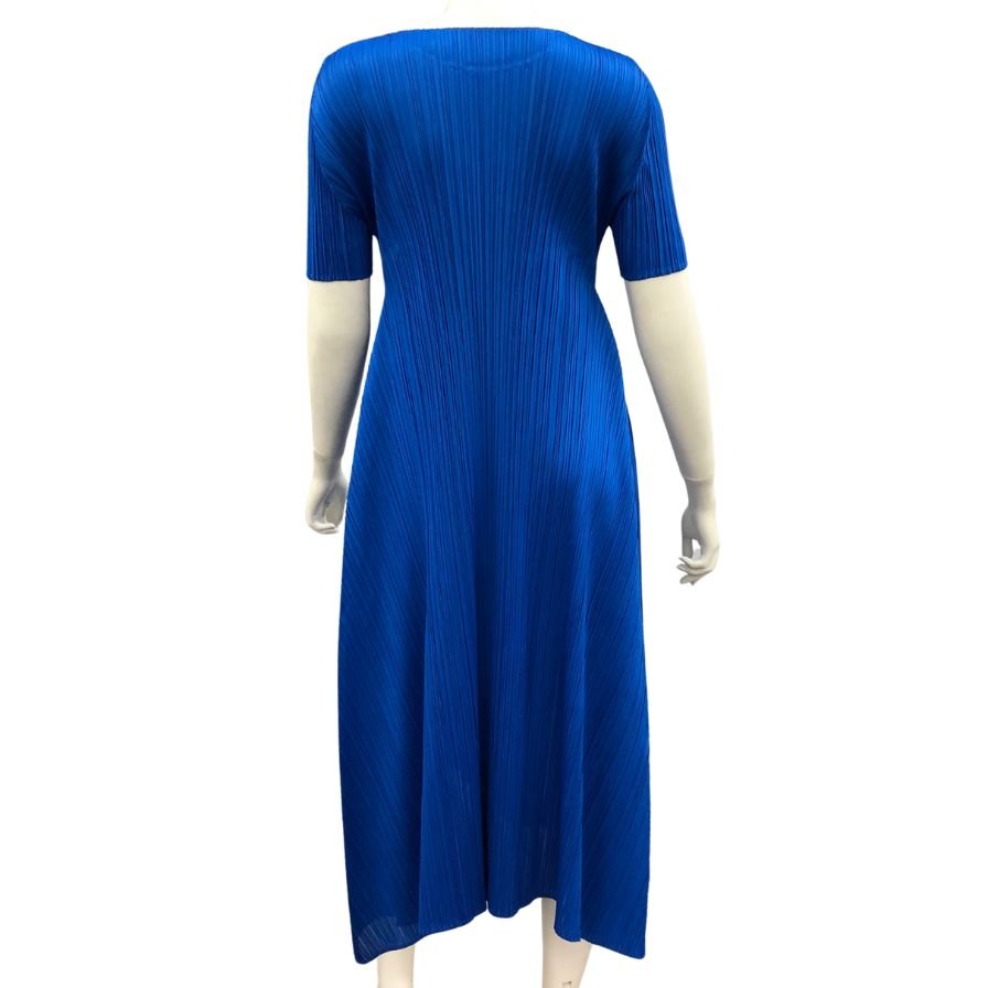 極美品◆プリーツプリーズ イッセイミヤケ プリーツロングワンピース PP43JH433 サイズ3 レディース ブルー 半袖 日本製 PLEATS PLEASE ISSEY MIYAKE MADE IN JAPAN 【AFB14】