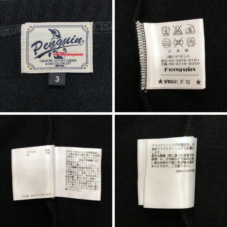 美品◆ペンギン カーディガン ニット ロゴ メンズ サイズ3 ブラック Penguin by Munsingwear 【AFB26】