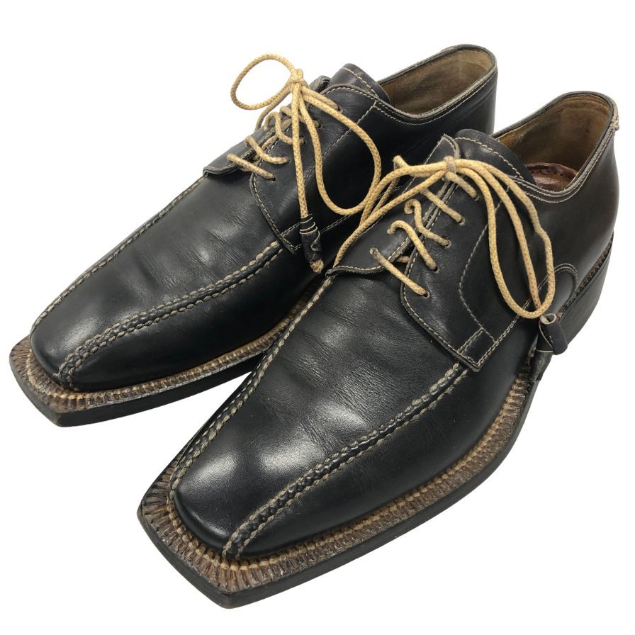ステファノ ブランキー二 スクエアトゥ ドレスシューズ サイズ8 ブラック Stefano Branchini 約26.5cm【AFD9-2】