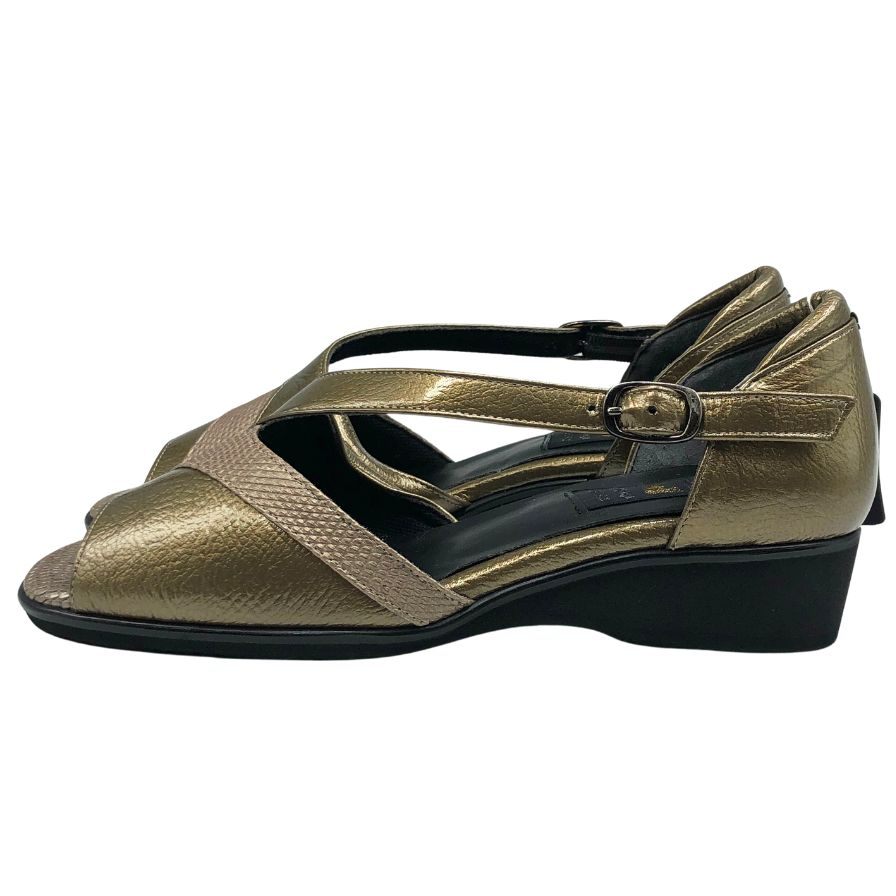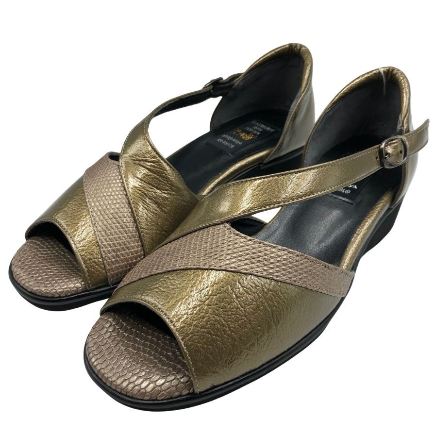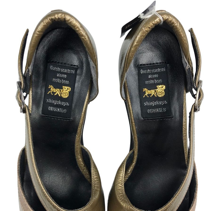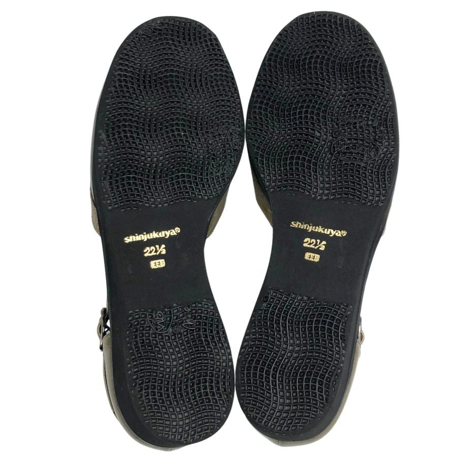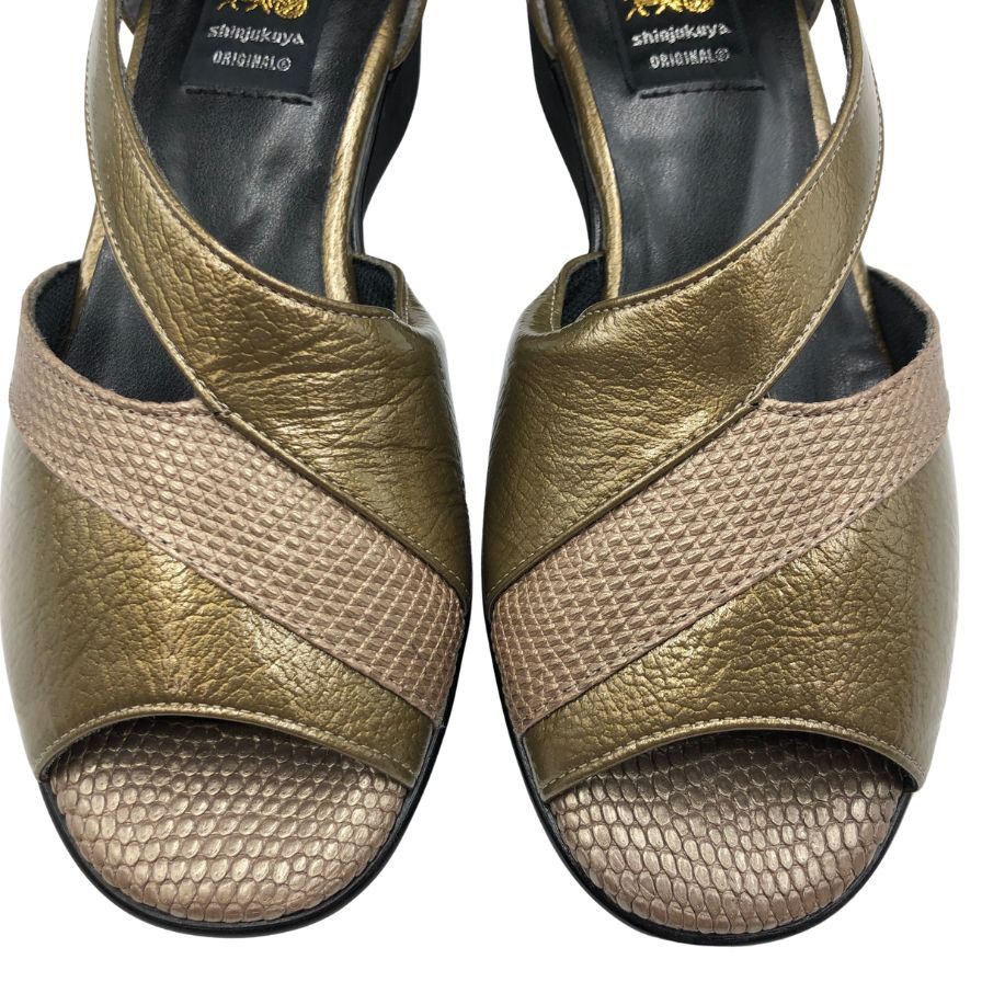 新宿屋 レザーサンダル レザー×リザード 2040-945 カーキ 22.5cm レディース shinjukuya 約22.5cm【7-6】