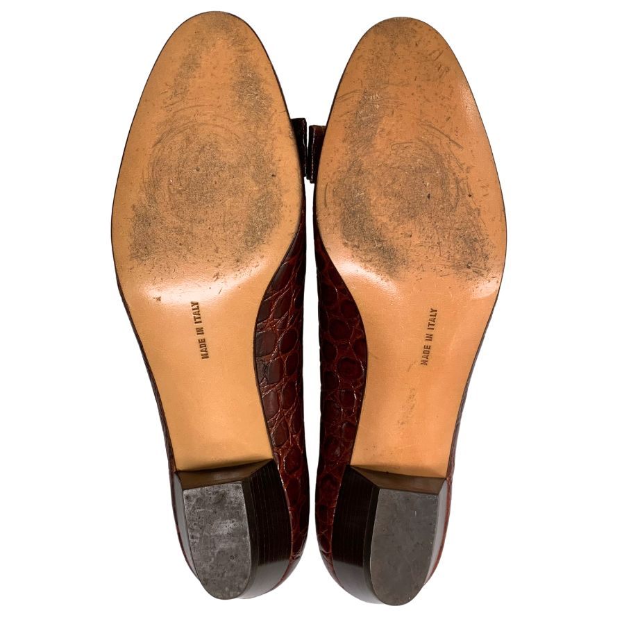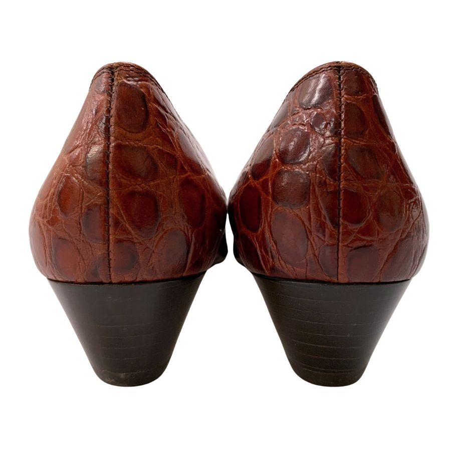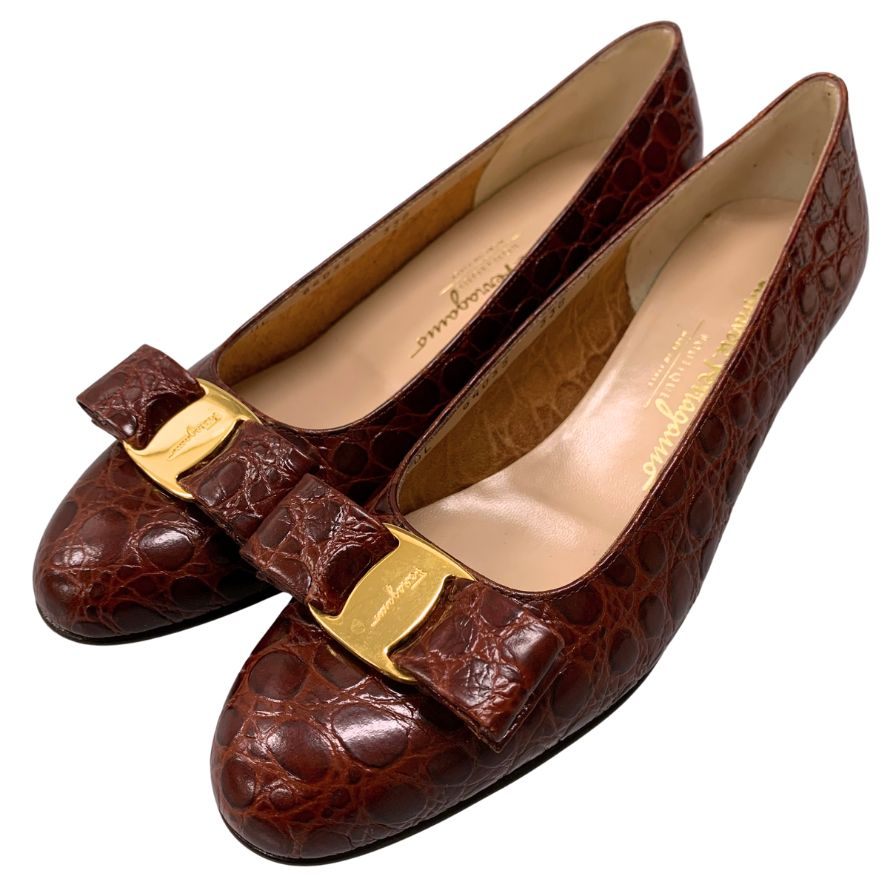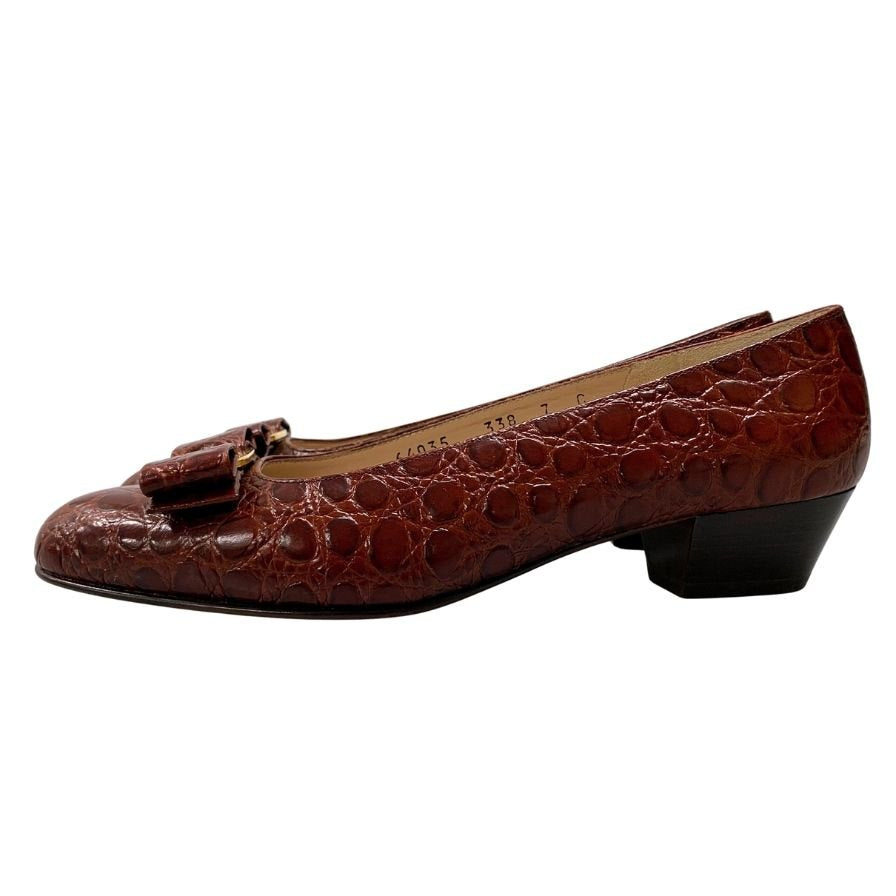 サルヴァトーレフェラガモ ヒールパンプス ヴァラ 型押し ブラウン レディース サイズ7C Salvatore Ferragamo 約24.5cm【AFC29】
