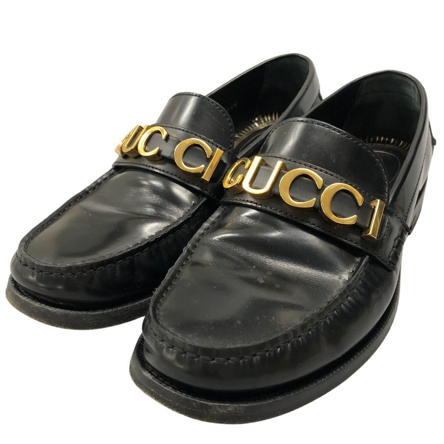 グッチ ロゴローファー 699644 メンズ サイズ6.5 ブラック GUCCI 約25.5cm【AFC2】