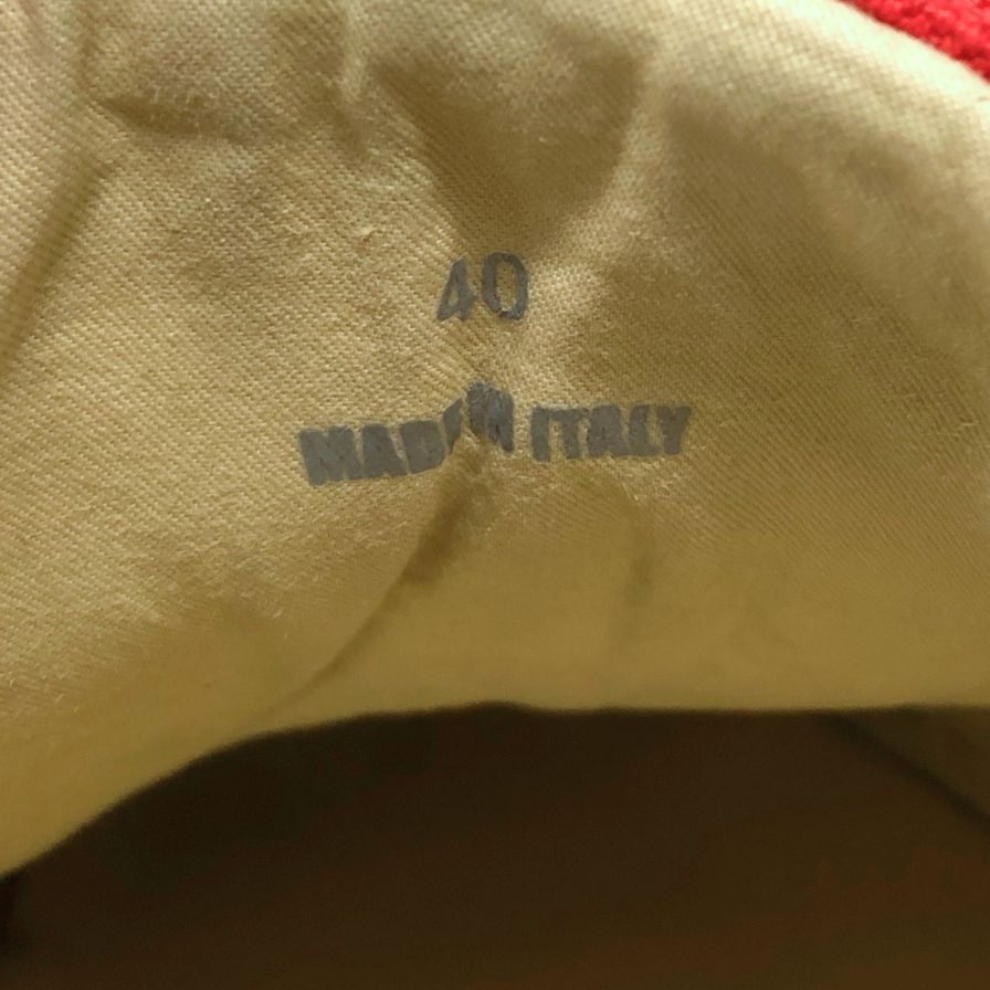 商品詳細 | 表記サイズ【40】(約26.5cm) アウトソール縦:29.5cm アウトソールウィズ:10.5cm 全高:11.5cm ヒール:5cm ※採寸に関しまして1~2cm程誤差が出てしまう場合もございます。予めご了承くださいませ。 |