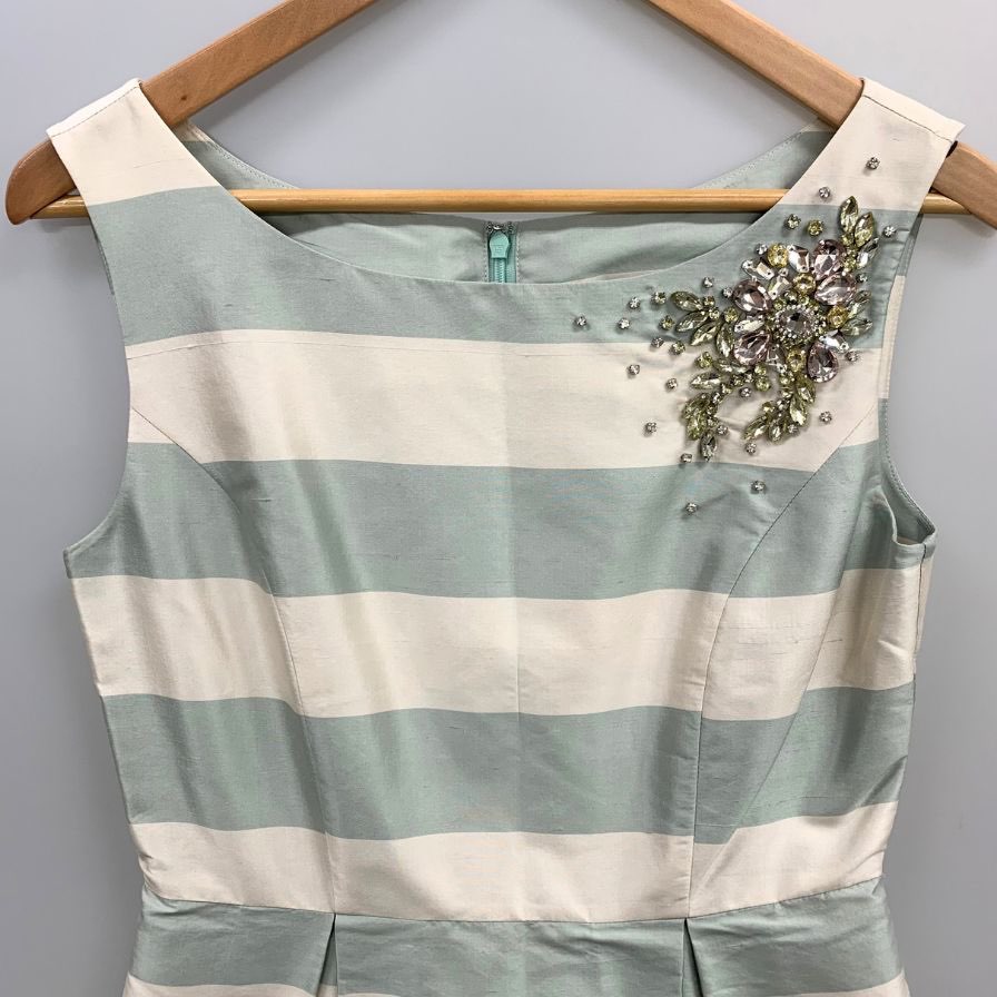 美品◆グレースコンチネンタル ノースリーブワンピース ビジュー装飾 ボーダー レディース サイズ36 GRACE CONTINENTAL 【AFB11】