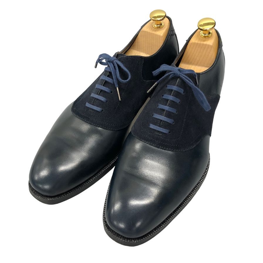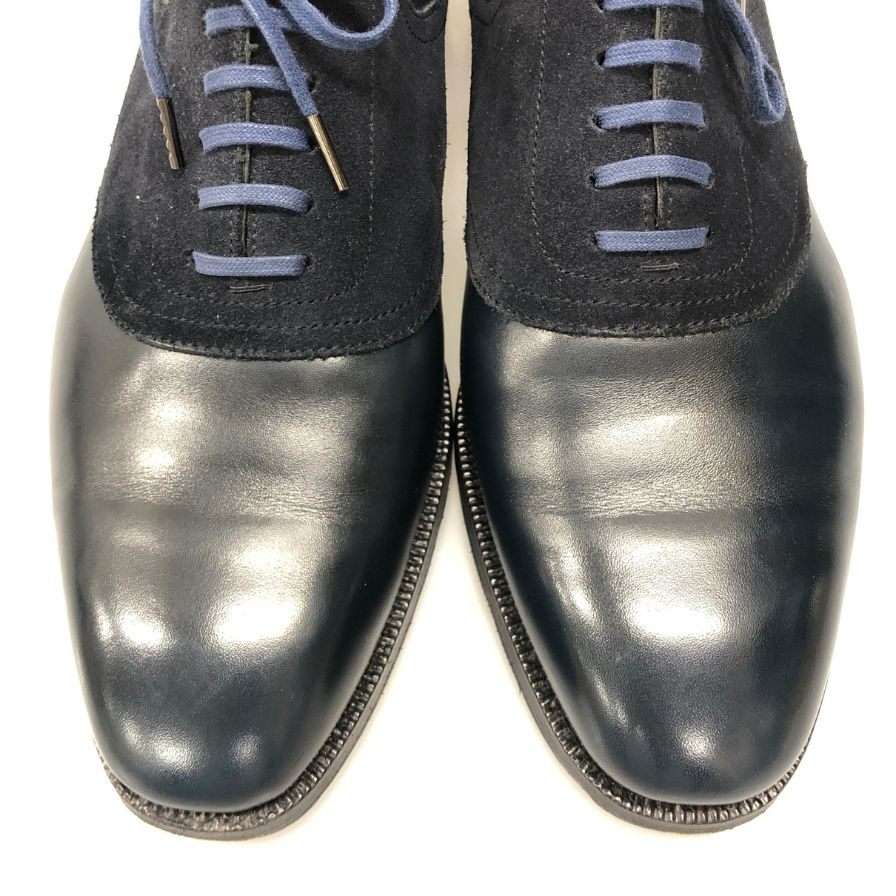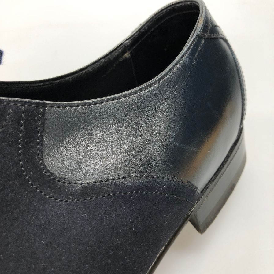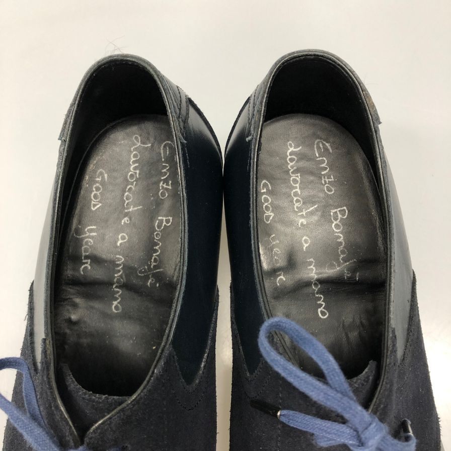 エンツォ ボナフェ プレーントゥ スエード レザーコンビ メンズ サイズ8 ネイビー Enzo Bonafe 約26.0cm【AFC3】