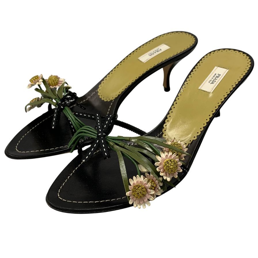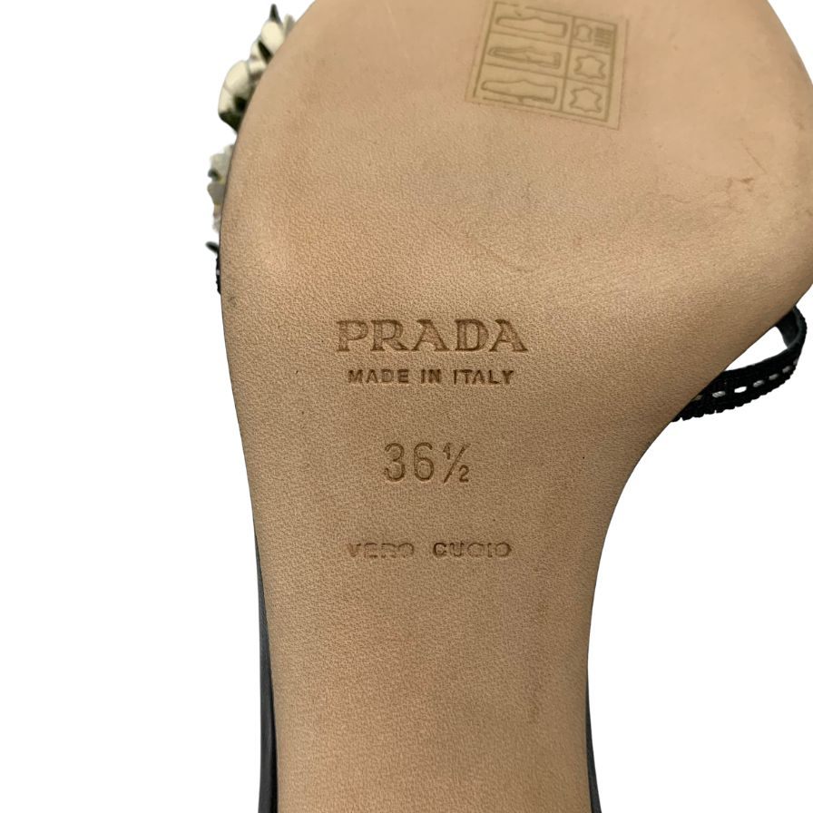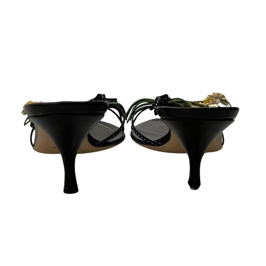 プラダ ヒールサンダル 立体花 ブラック レディース サイズ36.5 PRADA 約23.0cm【AFD9-2】
