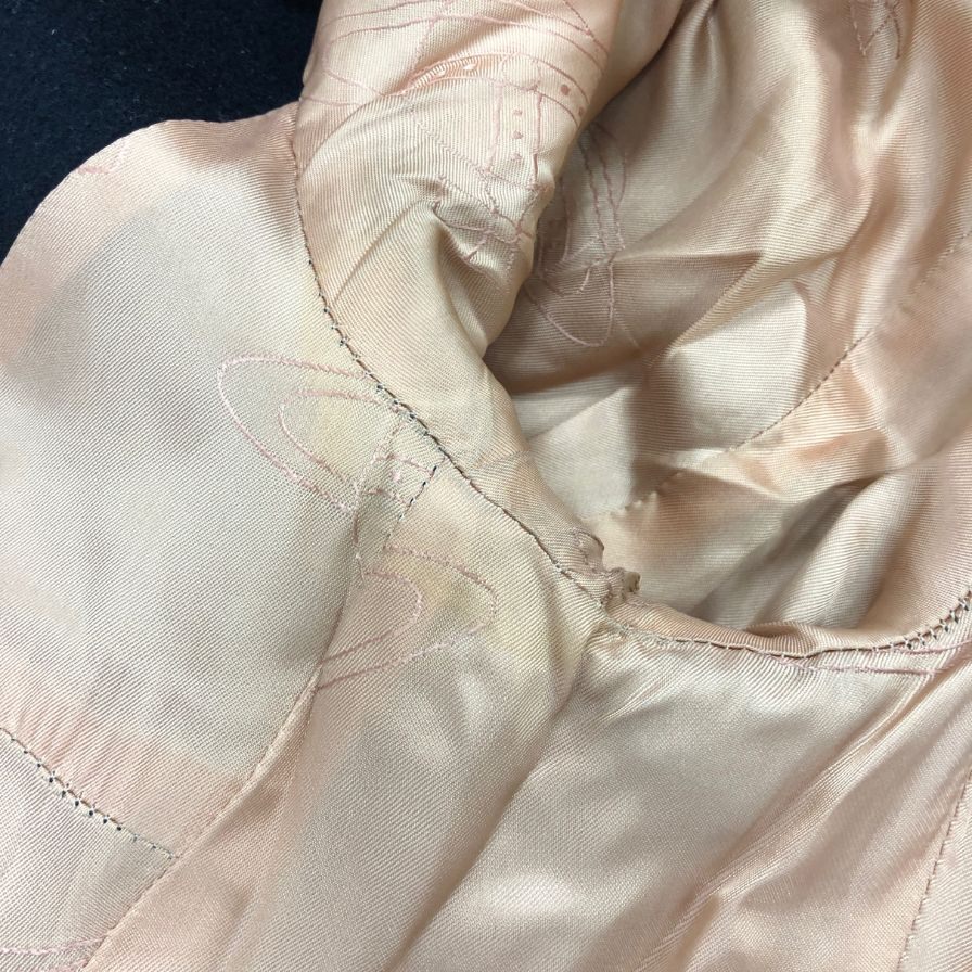 並行品、裏地破れ、脇黄ばみ、毛羽立ちが見られます。 |