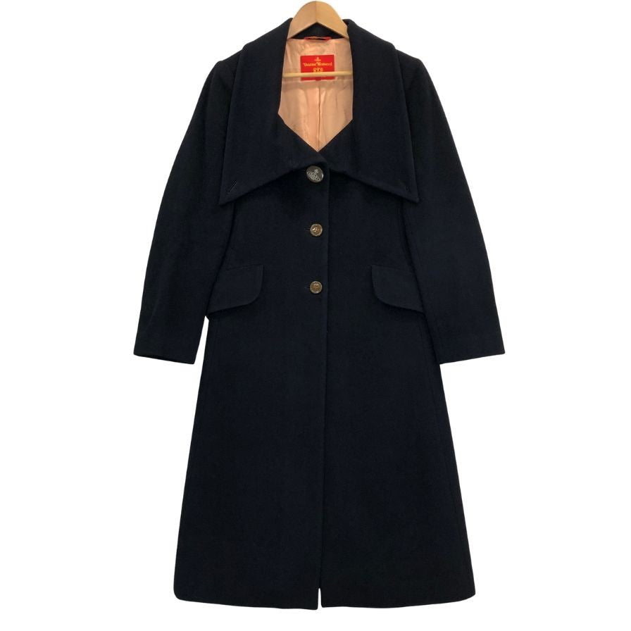 中古■ヴィヴィアンウエストウッドレッドレーベル チェスターコート 変形 ウール アンゴラ混 ロング ブラック レディース サイズ42 Vivienne Westwood RED LABEL 【AFA18】