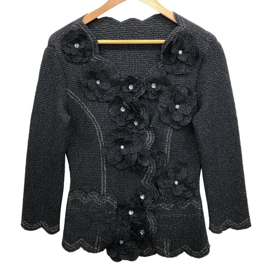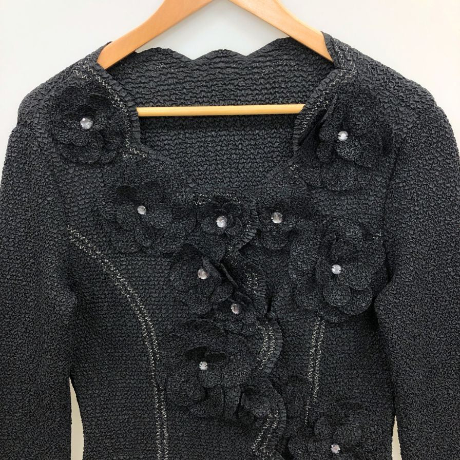 中古◆ノコオーノ プリーツ加工 フラワー付きジャケット ブラック サイズ不明 レディース NOKO OHNO 【AFB9】