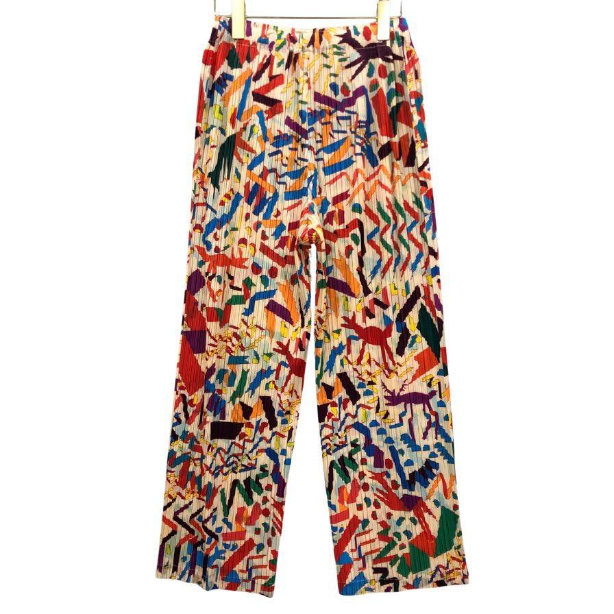 イッセイミヤケ プリーツプリーズ ワイドパンツ レディース PP13-JF673 総柄 サイズ4 ISSEY MIYAKE PLEATS PLEASE 【AFB4】