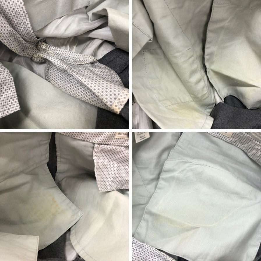 フロントにシミ、内側ポケット•股部分に黄ばみシミ汚れ強、ポケット内汚れが見られます。 |