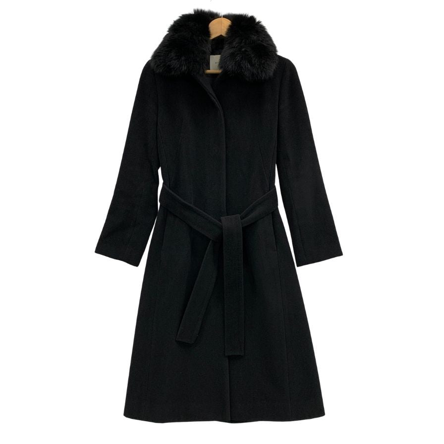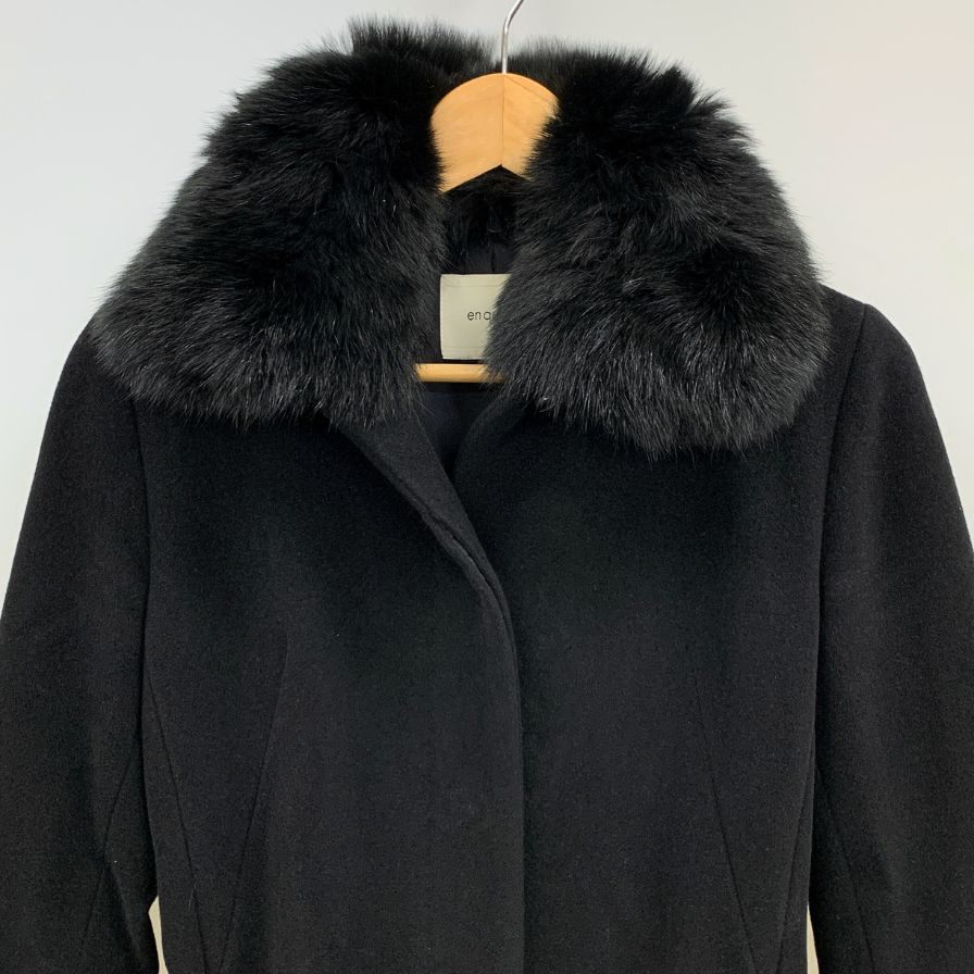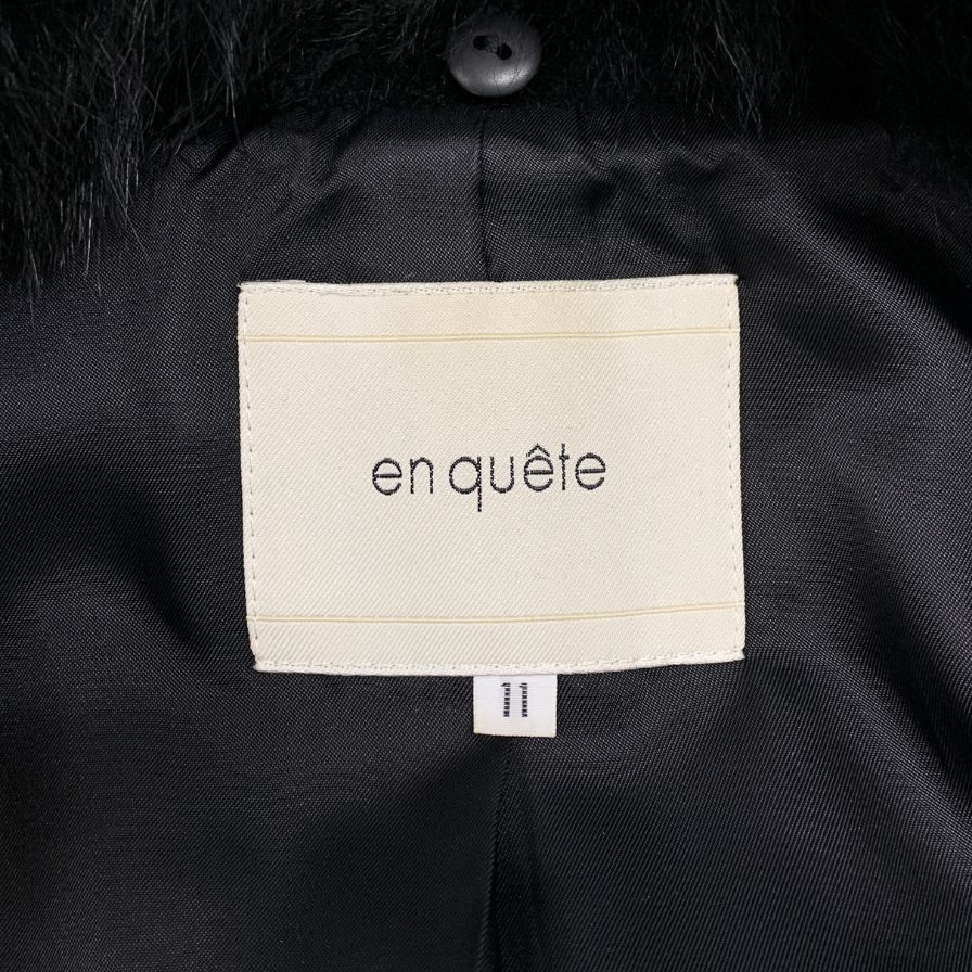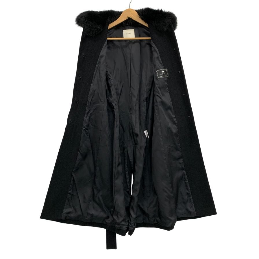 美品◆アン ケート アンゴラ混 フォックスファーコート ウールマーク サイズ11 ブラック en quete 【AFF22】