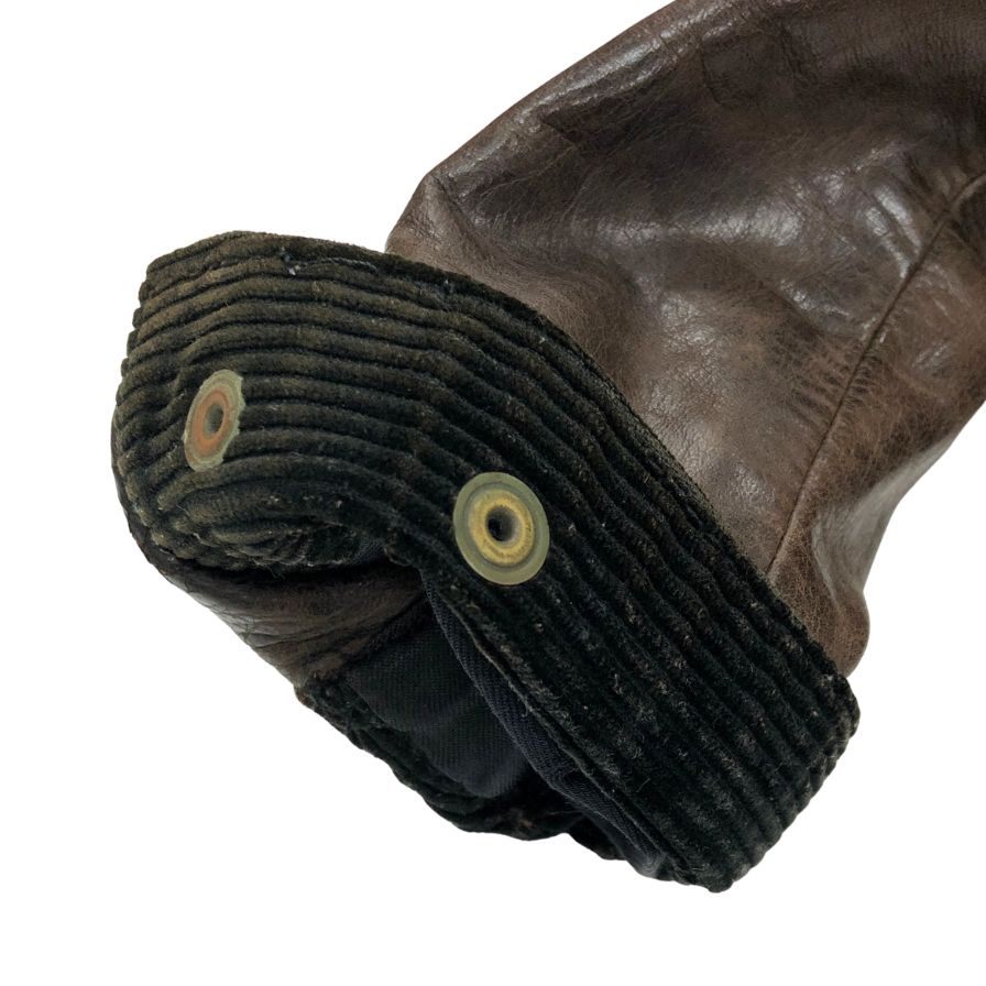 レザー表面スレ、袖裏・首回り汚れ、裏地糸ホツレ・毛羽立ち、ボタン錆・くすみが見られます。 |