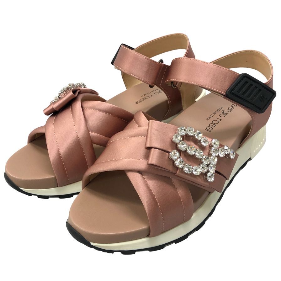 セルジオロッシ サンダル ビジュー ピンク レディース サイズ38 Sergio Rossi 約24.5cm【AFD15】