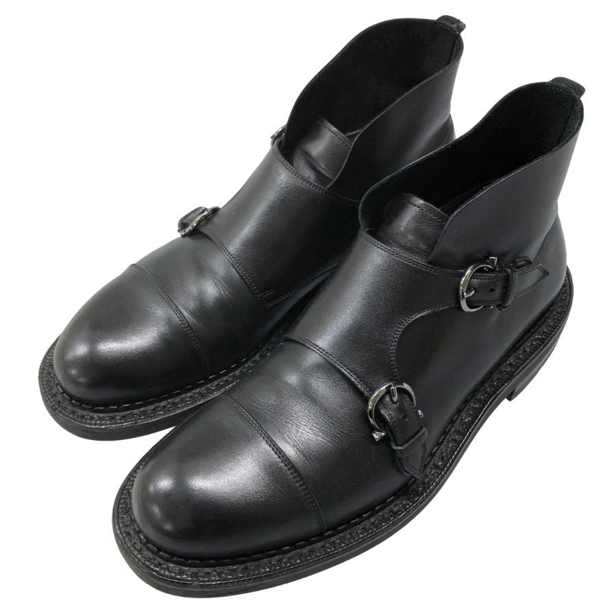 フェラガモ レザーブーツ ダブルモンク 28035 ブラック サイズUK6.5EE FERRAGAMO 約25.5cm【AFC42】