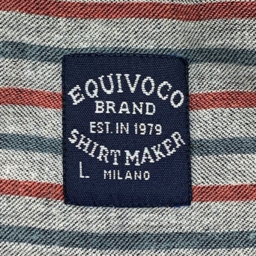 中古◆エクイボコ ストライプ シャツ イタリア製 メンズ サイズL グレー系 EQUIVOCO 【AFB7】