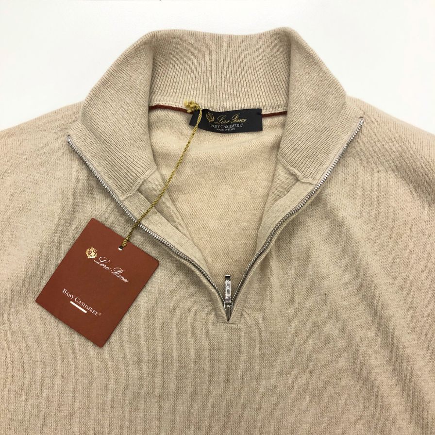 新品同様◆ロロピアーナ ニットセーター ベビー カシミア 100% ハーフジップ プルオーバー ベージュ メンズ サイズ60 Lolo piana 【AFB41】
