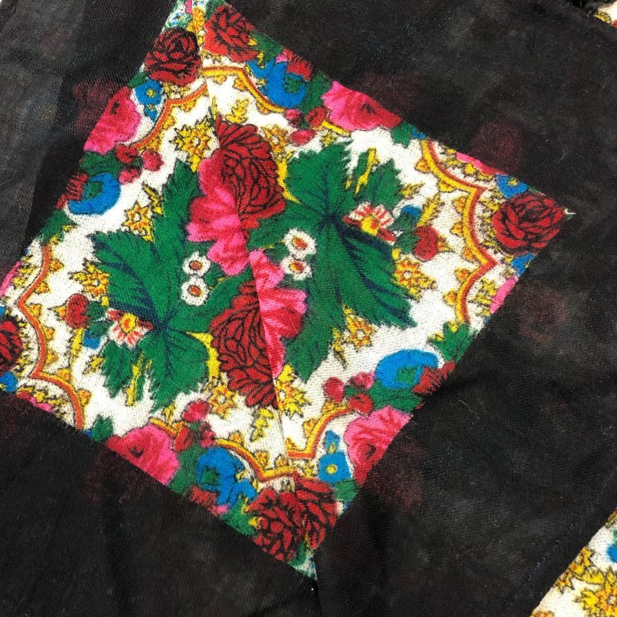 トリココムデギャルソン ストール 花柄 総柄 ウール フリンジ TH-K401 ブラック レディース tricot COMME des GARCONS【AFI21】