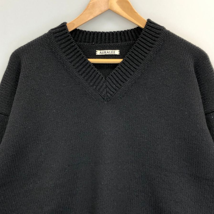 極美品◆オーラリー Vネックニット ウール ブラック メンズ サイズ5 AURALEE 【AFB41】