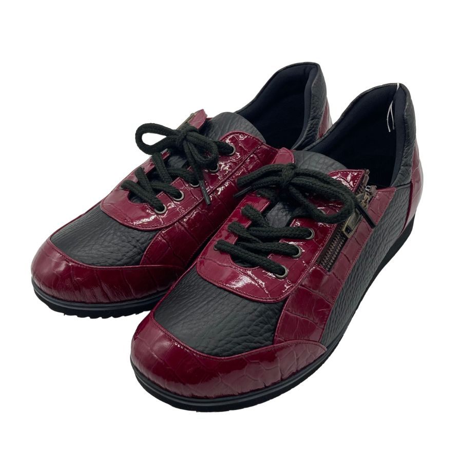 ジュンジュンバイ新宿屋 スニーカー 1515 レザー ワイン ブラック エナメルレザー 切替 レディース サイズ22 Jun.Jun by shinjukuya 約22.0cm【7-9】