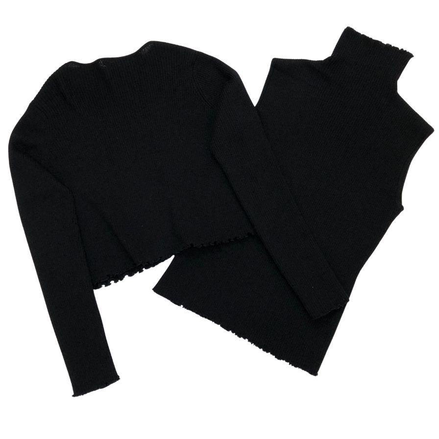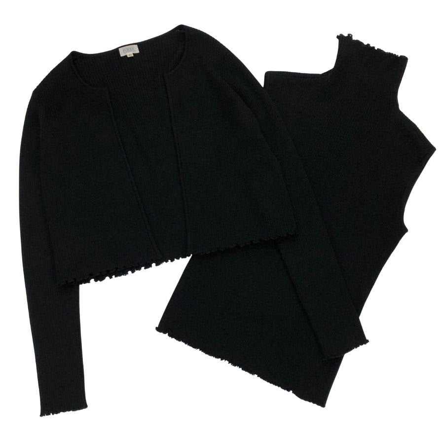 美品◆フォクシー セットアップ カーディガン&ノースリーブ タートルネック ニットカットソー ストレッチ ウール100% 42サイズ ブラック 14597-AKF0108 FOXEY 【AFB33】