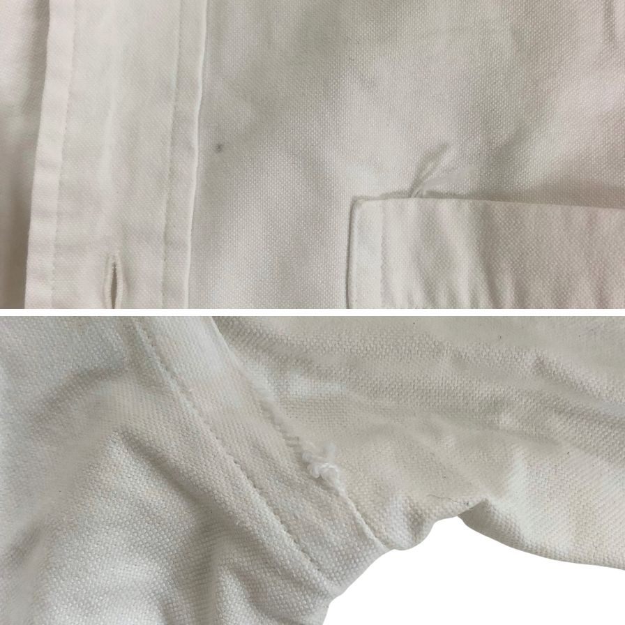 表タグスレ、袖や首・背中部分等汚れ、左脇・胸ポケットにほつれが見られます。(画像参照) |