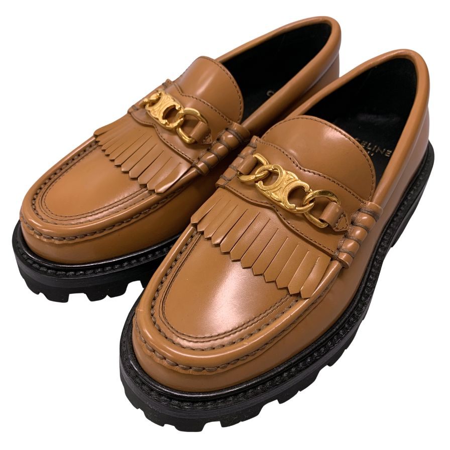 セリーヌ マーガレットローファー トリオンフ金具 ベージュ レディース サイズ34 CELINE 約21.0cm【AFD15】